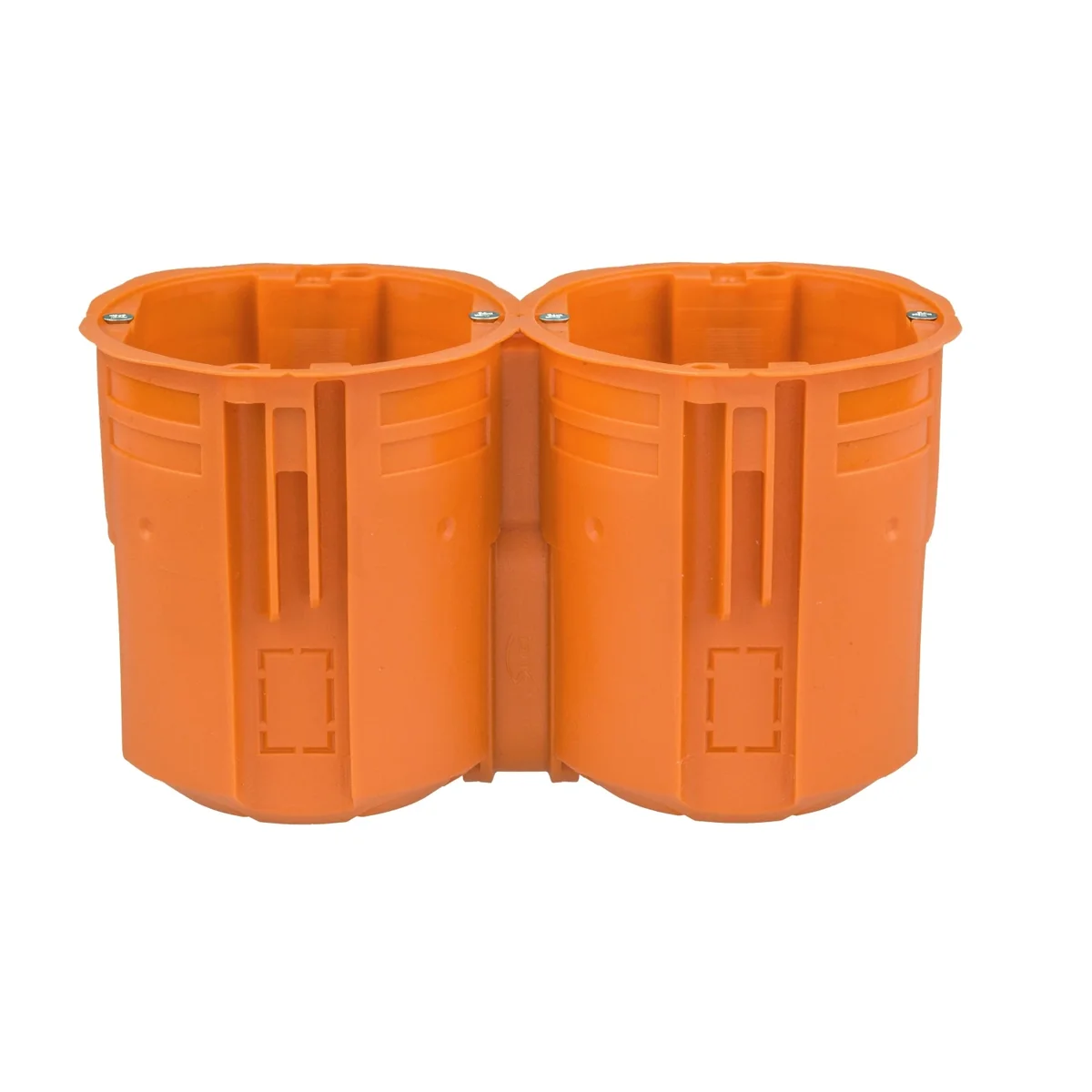 Caja de empotrar 60 mm, extra fondo 80 mm, con tornillos, naranja. Posibilidad de conectar cajas en serie mediante el conector KG71.
