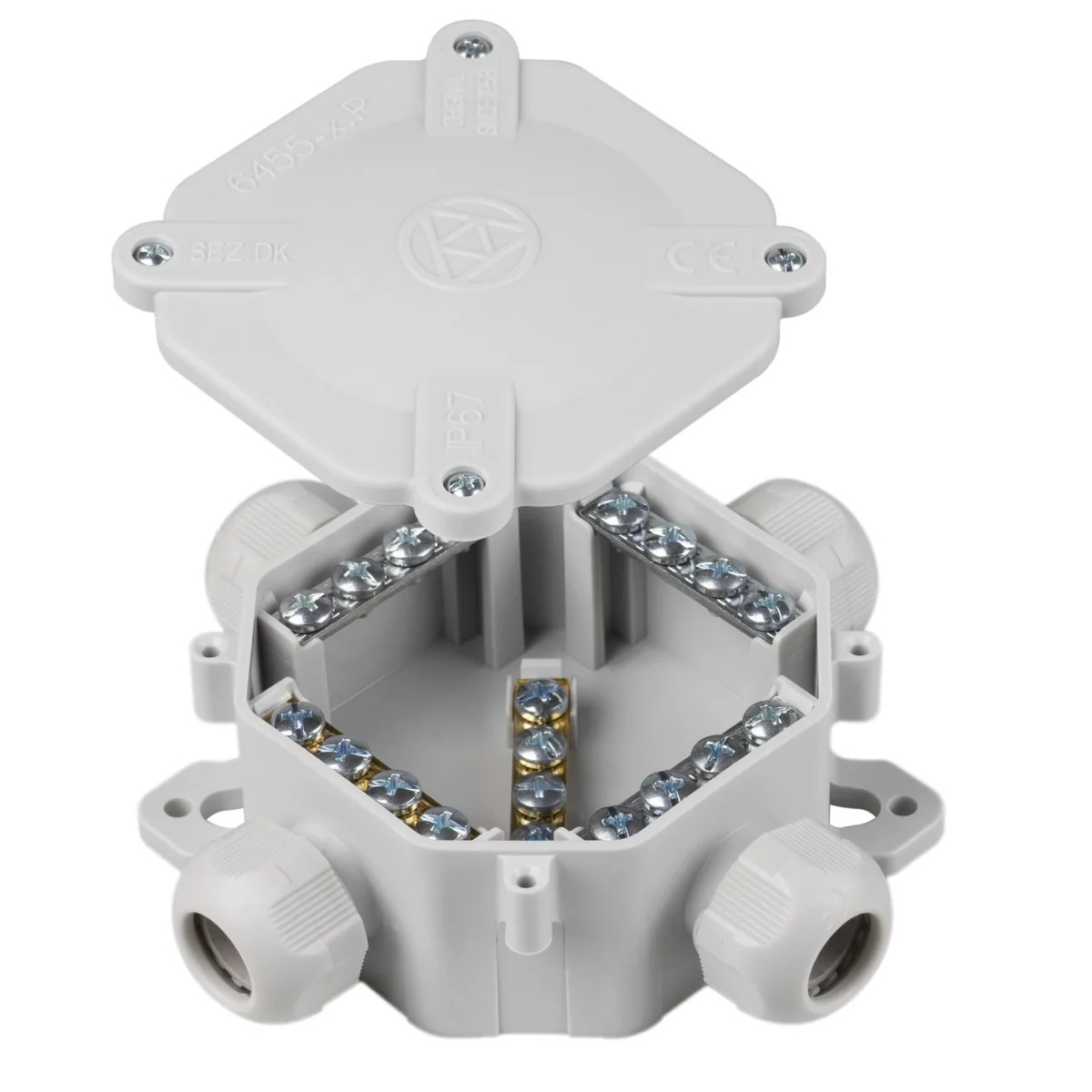 ACIDUR 3 Caja de pared de superficie, 4 salidas, IP67, autoextinguible, gris