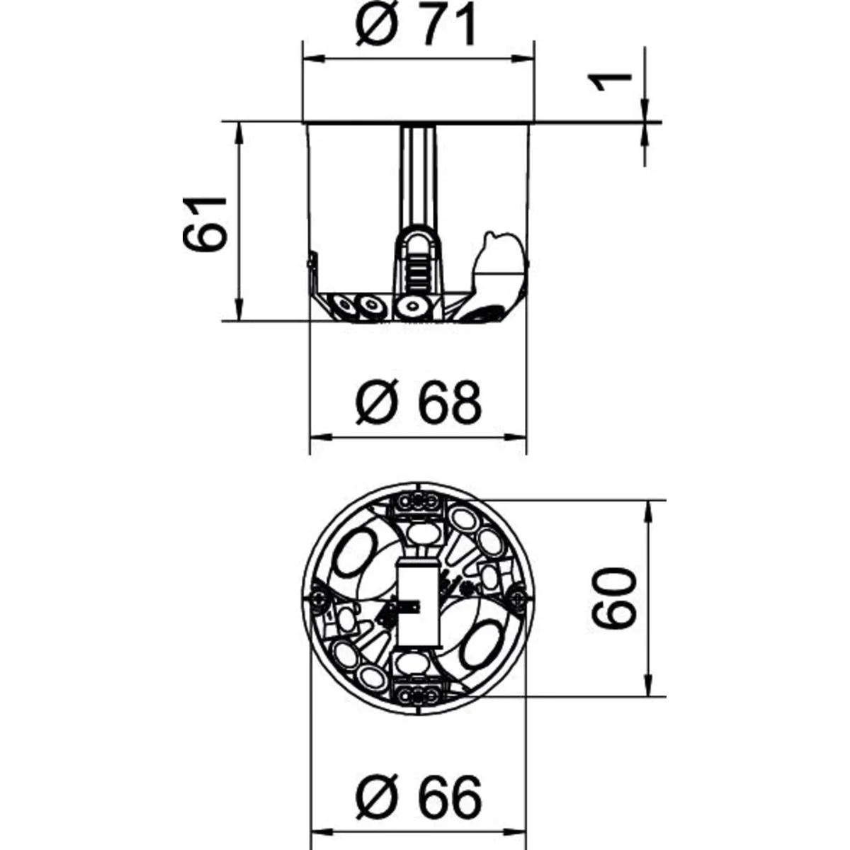 Caja para paredes de placa con entradas de membrana hermética, para uso en paredes con una profundidad de construcción de al menos 61 mm y un espesor de placa de 5 - 40 mm.