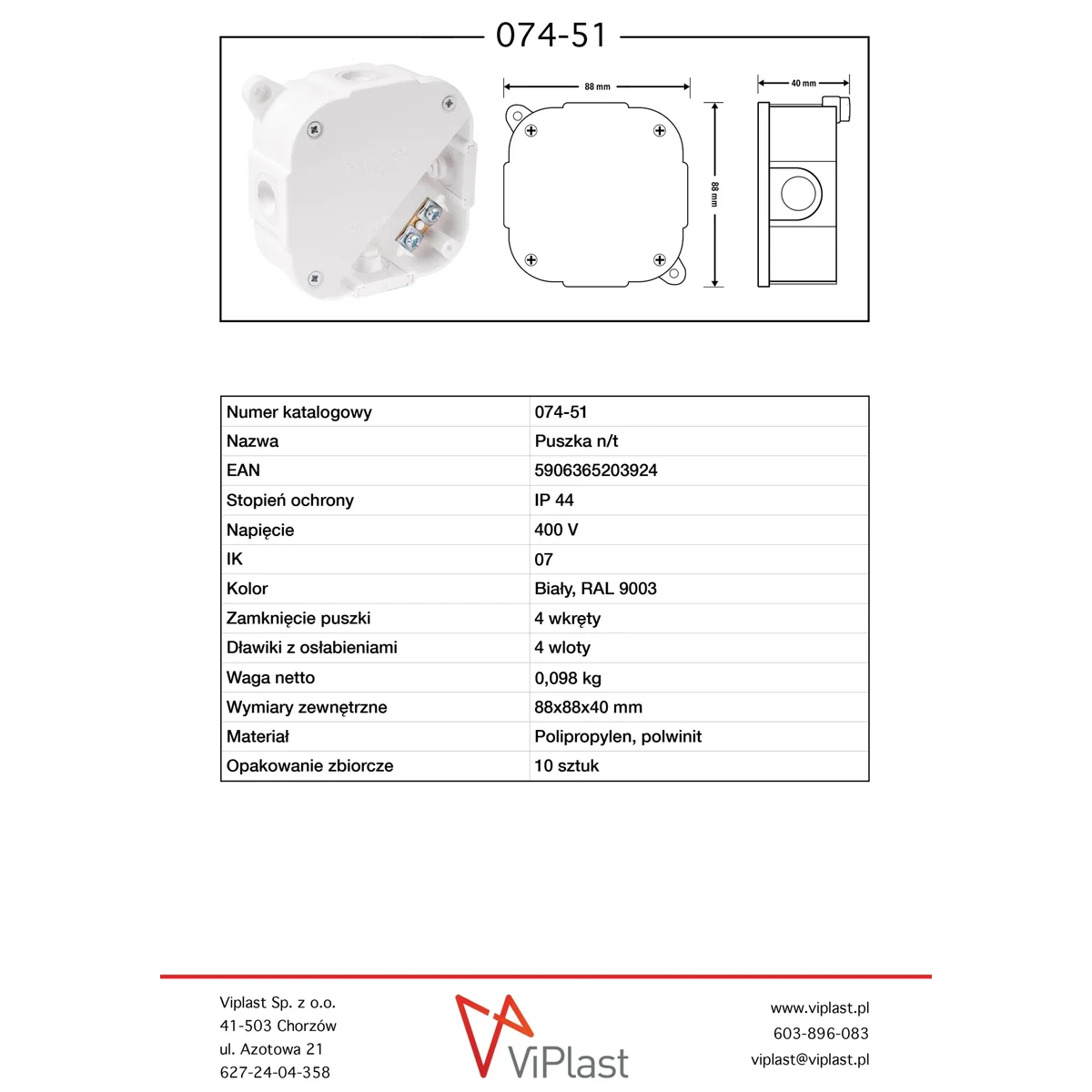 | Waga (kg) | 0,098 | - | - |