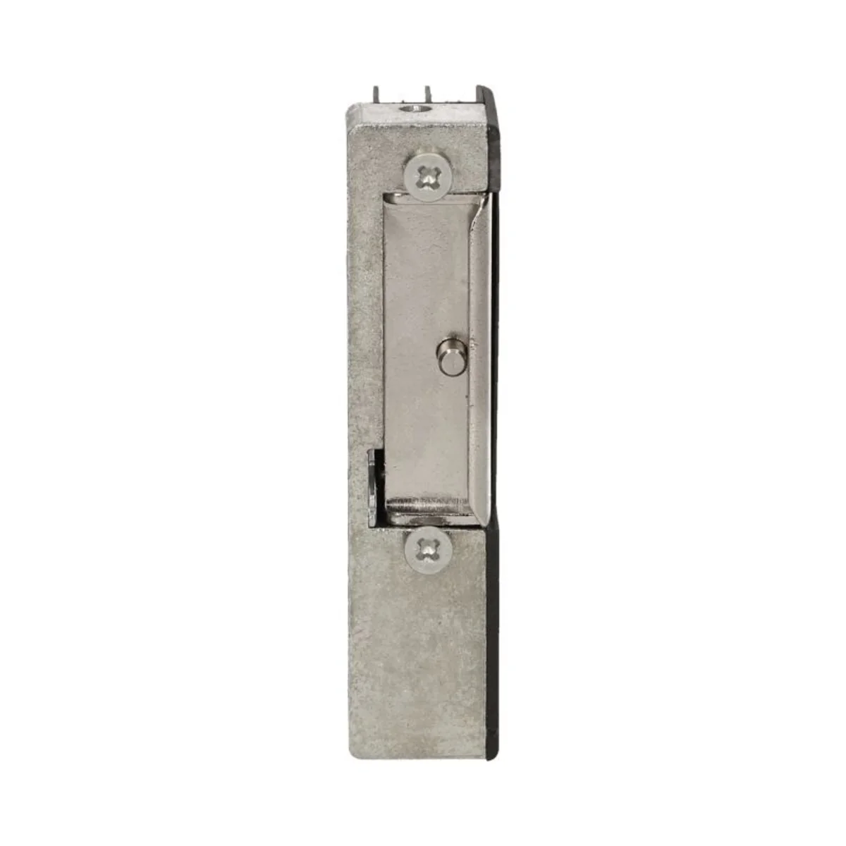 Pestillo eléctrico fabricado en aleación de Zamak duradera y resistente a la corrosión. Trabaja con instalaciones de portero automático y videoportero en puertas de entrada de edificios unifamiliares y plurifamiliares. Se puede montar en exteriores con señales estándar.