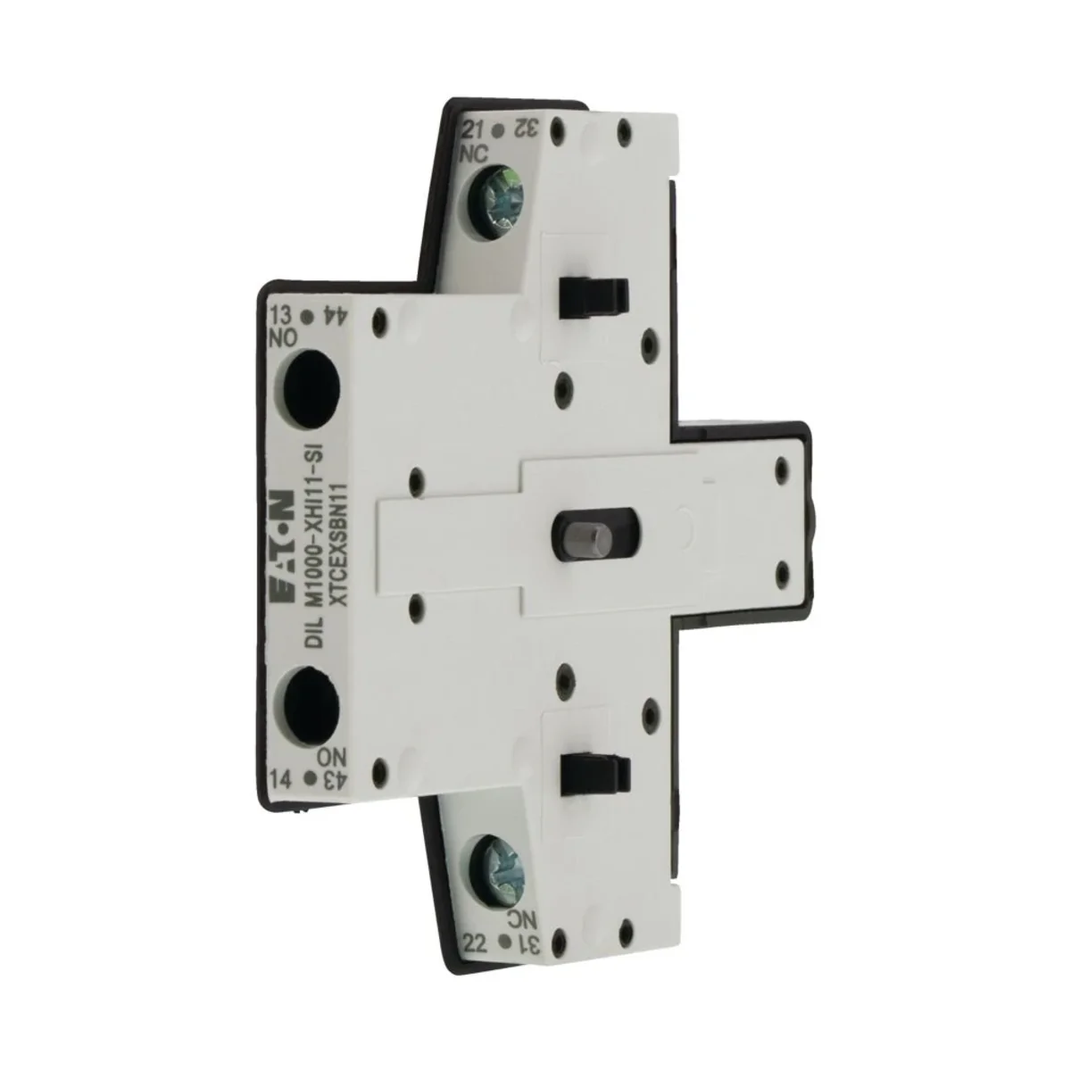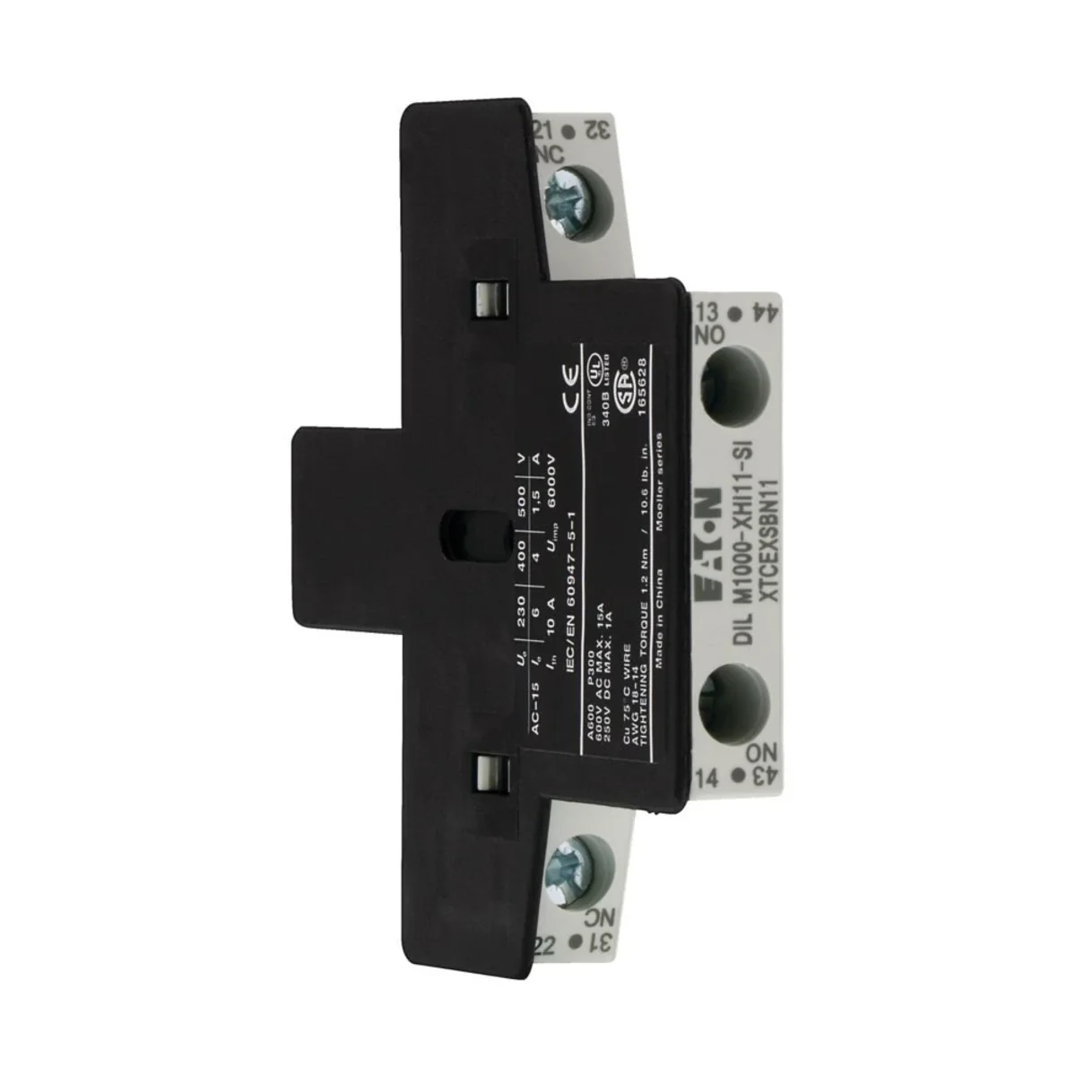 • Contactos de apertura positiva según IEC/EN 60947-5-1 Anexo L, entre módulos de contactos auxiliares y para contactos auxiliares integrados en contactores DILM7. DILM32 (no con cierre acelerado y con caída retardada)