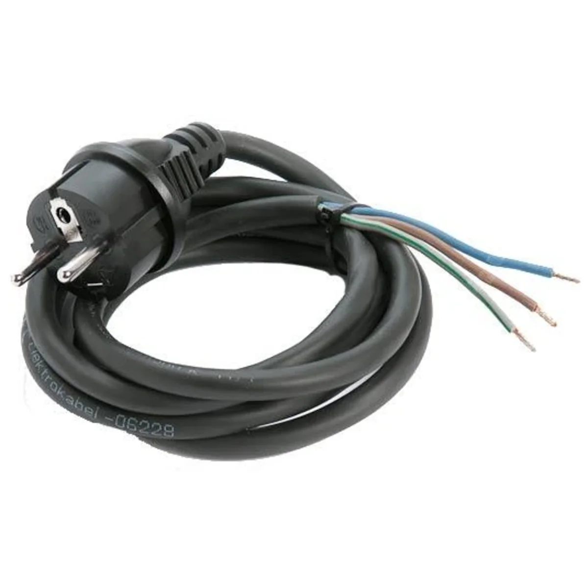 Ofrecemos el cable de conexión H05RR-F(OW). Es de tres hilos; Cada conductor es multifilar, flexible, ideal para receptores móviles (clase 5) con una sección de 1,5 mm2. La longitud del cable es de 1,5 m. El material utilizado en este cable es caucho natural y sintético, hasta 60 °C. La tensión nominal alcanza los 500V. Además, el cable dispone de enchufe recto con toma de tierra uni-schuko. Es de color negro.
