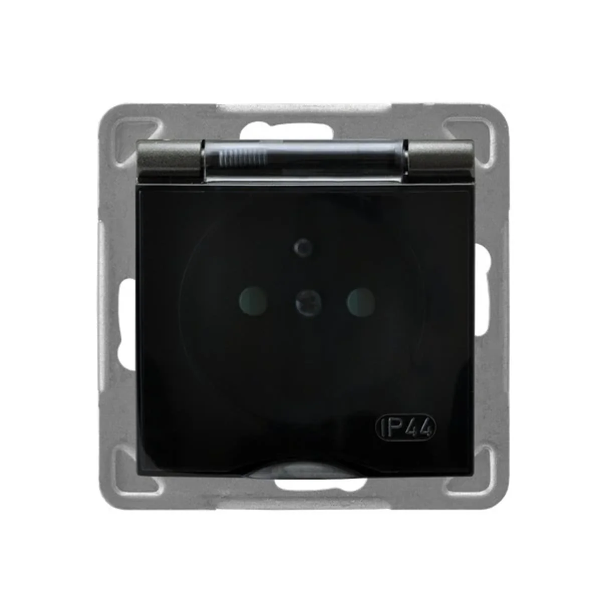 IMPRESJA Toma a prueba de salpicaduras con conexión a tierra IP44 y cubrepistas - Ospel Impresja, antracita GPH-1YZP/M/50/D
