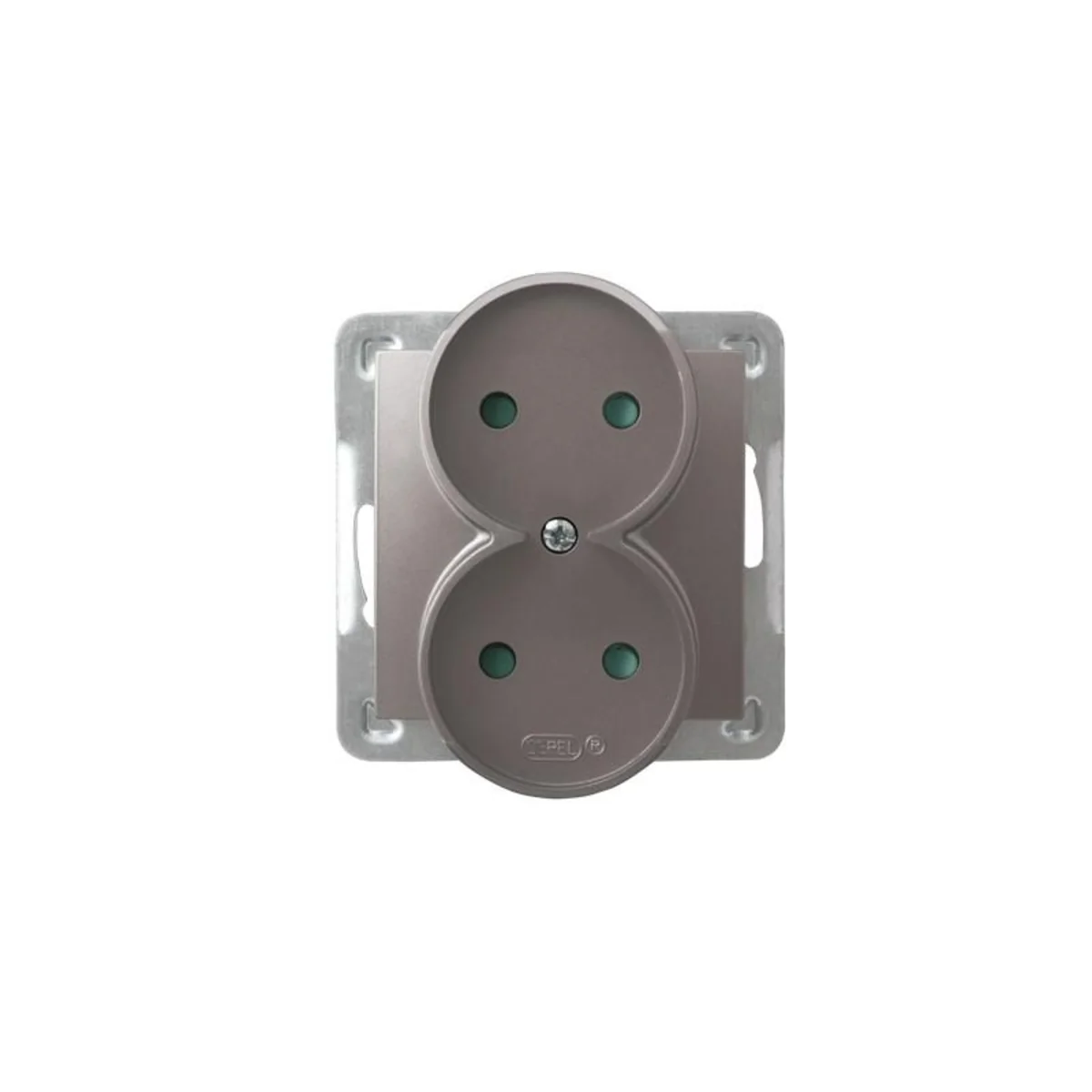 Doble toma de corriente, con persianas de paso de corriente, a equipar con marco.