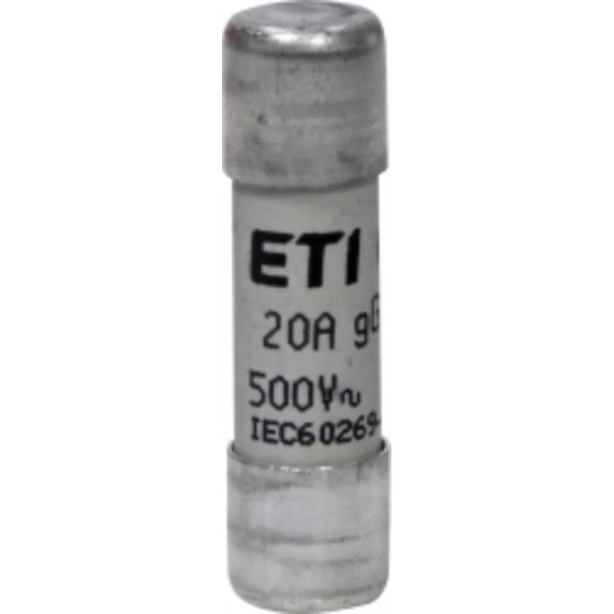 Inserto de fusible cilíndrico CH 10x38 gG 20A 500 - retardado. Los fusibles insertables cilíndricos CH (con características gG y aM) se utilizan para proteger aparatos e instalaciones eléctricas contra los efectos de cortocircuitos y sobrecargas. Los cartuchos fusibles cilíndricos no tienen indicador de activación.