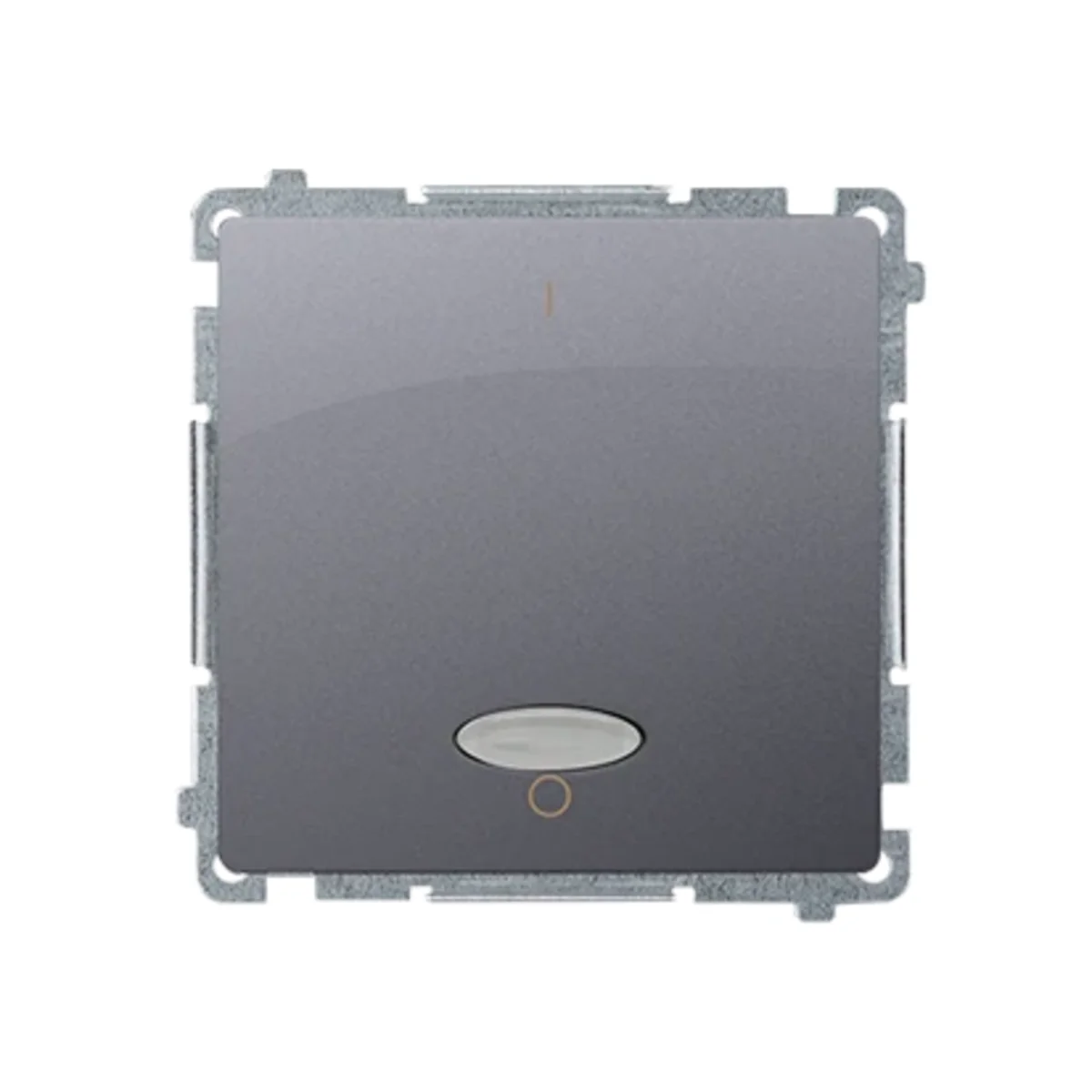 Interruptor bipolar con retroiluminaciónde la serie Simon Basic, del fabricante Kontakt Simon. El número de catálogo del producto esBMW2L.01/21.