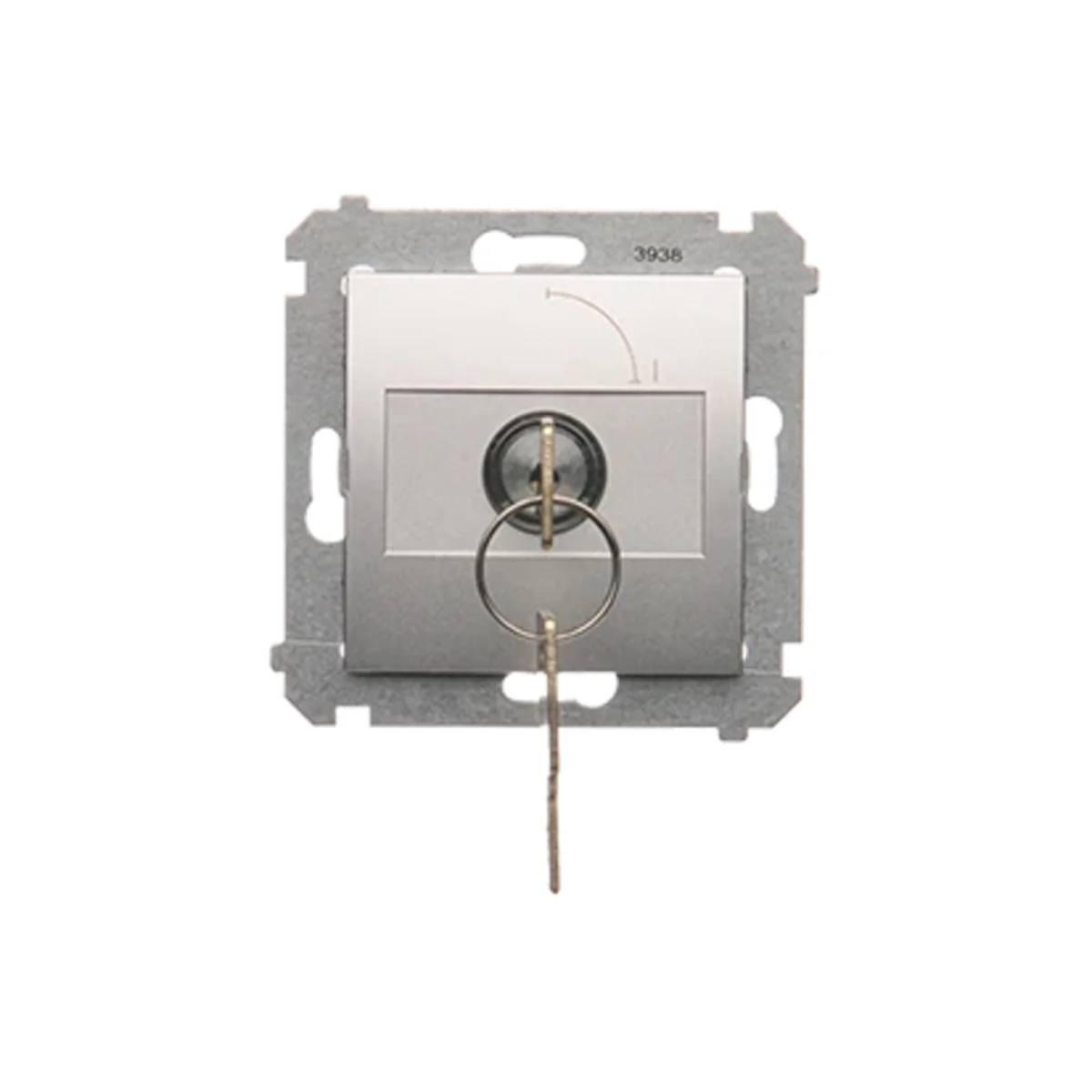 Interruptor unipolar (biestable) de la serie Simon 54.Accionamiento con llave, 2 posiciones 0-I. Posibilidad de extraer la llave en cada artículo, 2 piezas de llave incluido con el producto.
