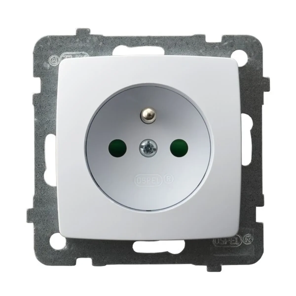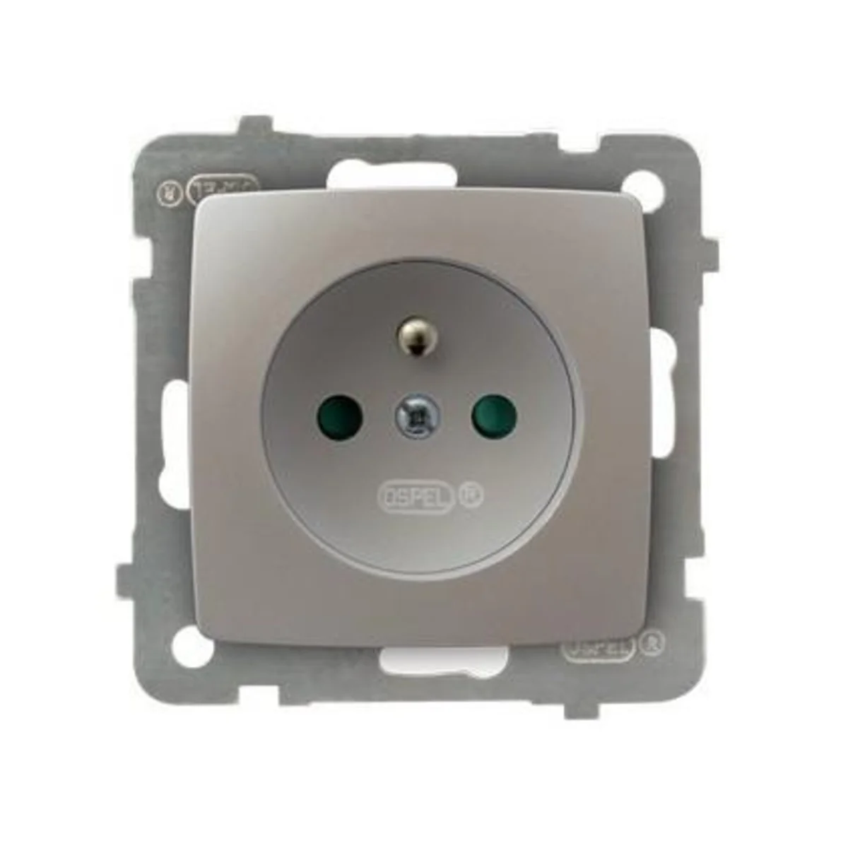 Toma de corriente de la serie Karo, del fabricante Ospel. El número de catálogo del producto es GP-1SZP/M/00.
