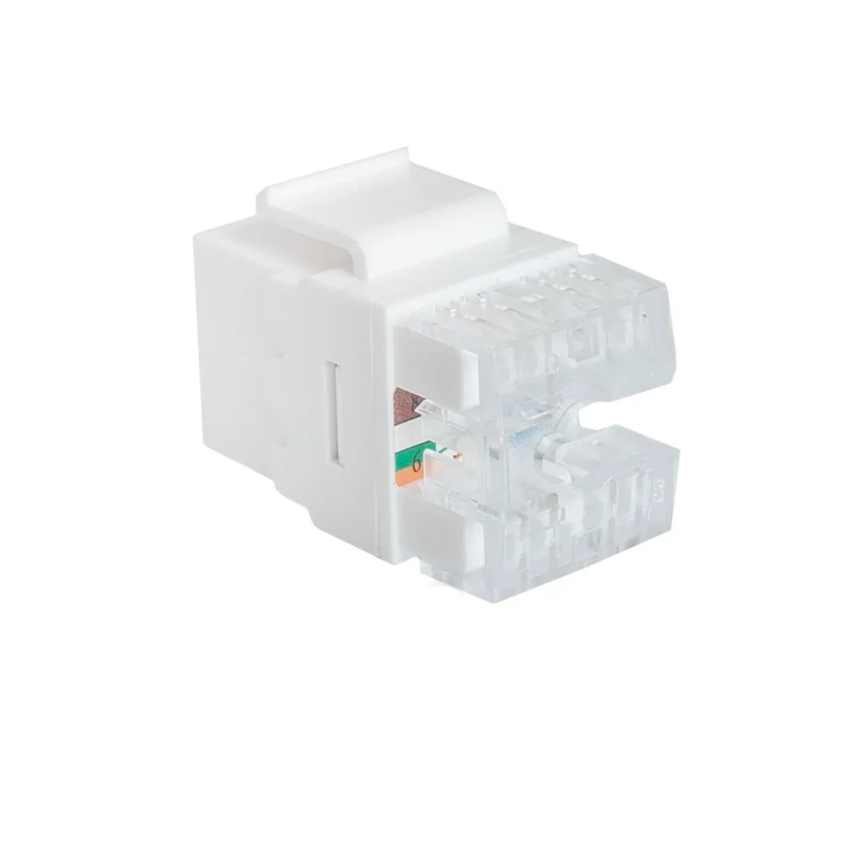 El módulo keystone UTP categoría 5e está destinado a la terminación de cables de instalación en bases de conexión y paneles vacíos. Sistema de montaje de módulo Keystone garantiza la compatibilidad con enchufes de varios fabricantes.