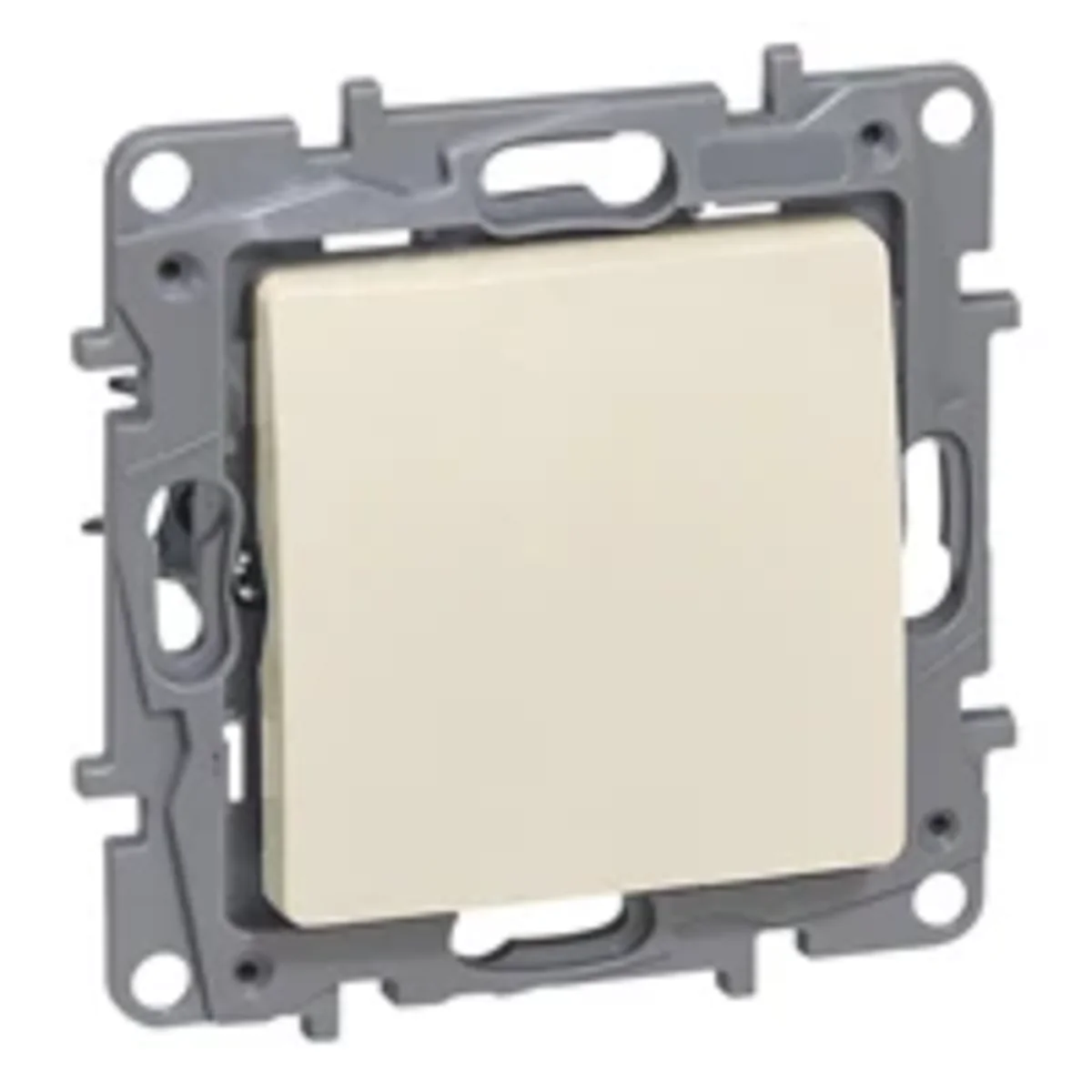 Interruptor unipolar de la serie Niloe, del fabricante Legrand. El número de catálogo del producto es764600. De color crema.