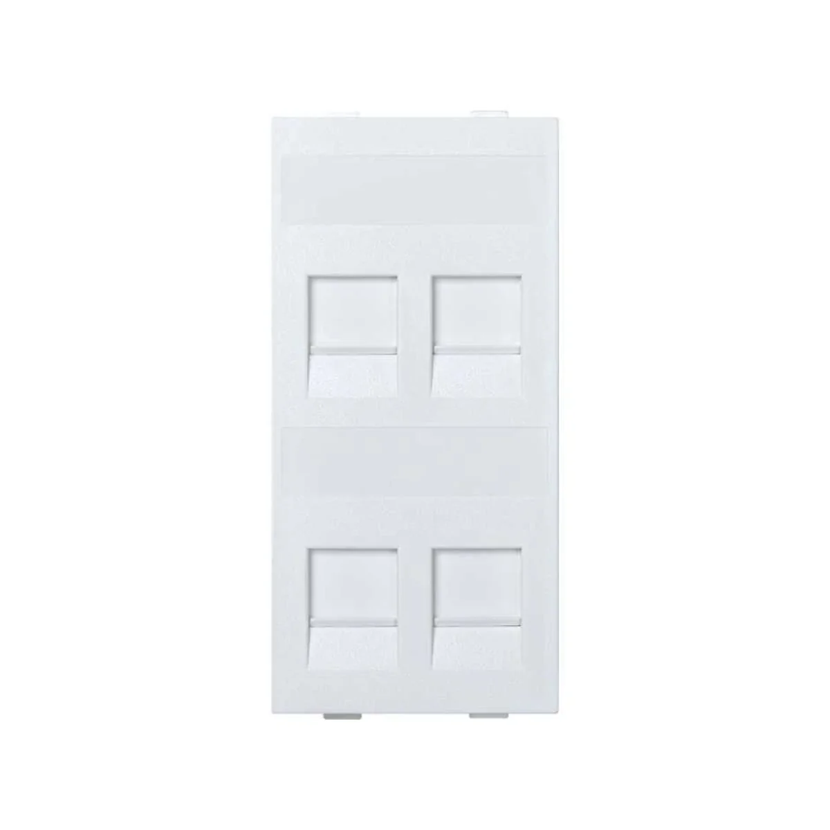 CIMAICT para Keystone, cuádruple (para 4 entradas RJ), plana, universal, equipada adicionalmente con tapas. Está hecho de plástico. Método de montaje: vertical, pestillos. El número de catálogo del producto es S76C/9.