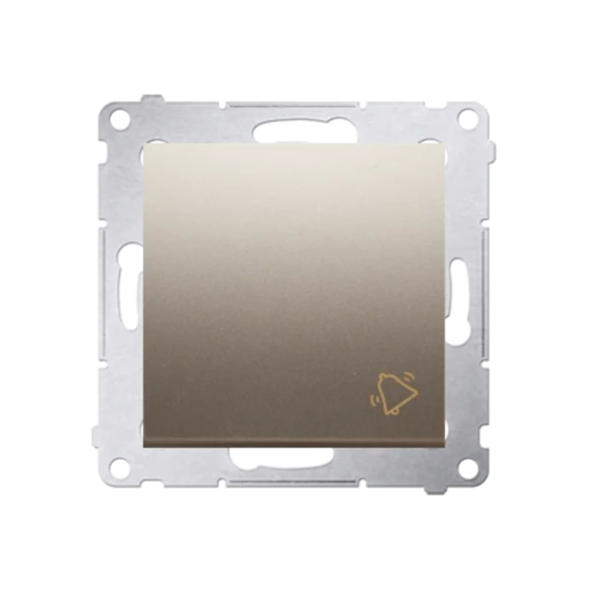 botón "campana" de la serie Simon 54, del fabricanteContactar con Simon. El número de catálogo del producto esDD1.01/44.  ;En color oro mate, metalizado.
