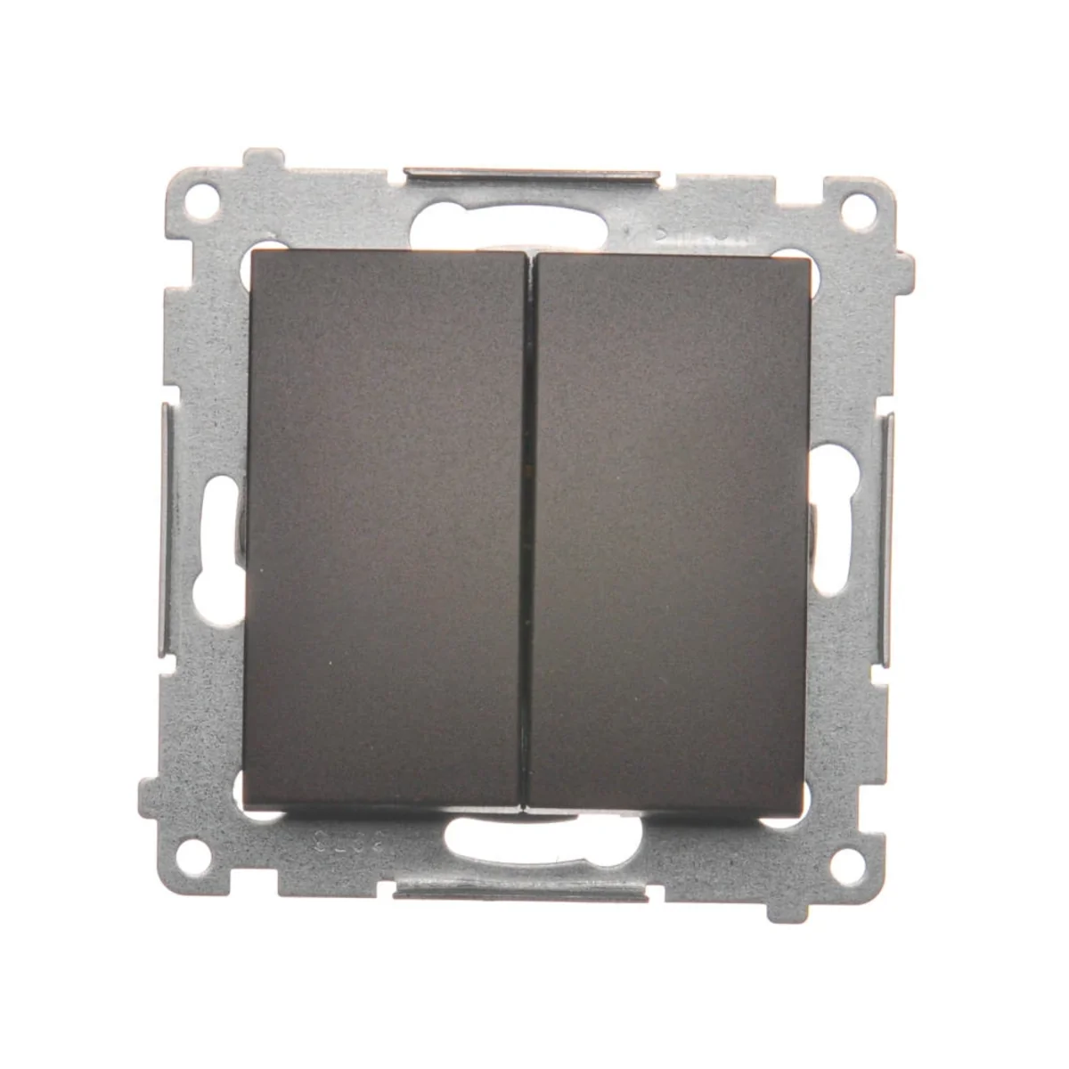 Pulsador de contacto de doble marcade la serie Simon 54, del fabricante Contact Simon.El número de catálogo del producto es DP2. 01/46. Marrón mate, metalizado.