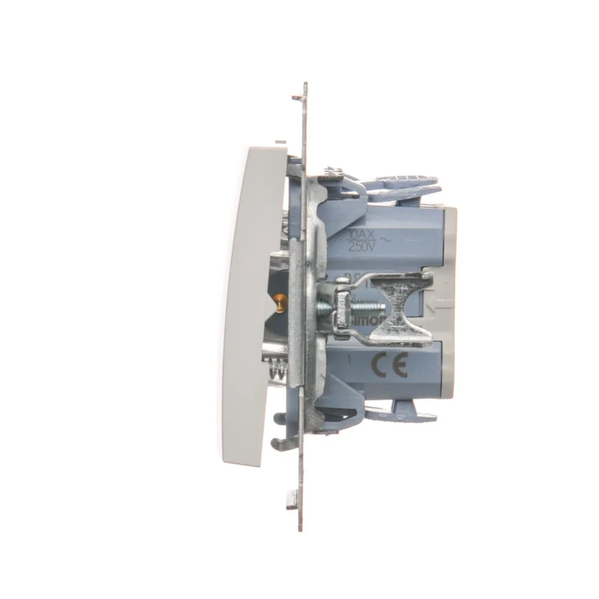 Botón de luz con retroiluminación, de la serie Simon 54, del fabricanteContactar con Simon.El número de catálogo del producto esDS1L.01/11 . En color blanco.