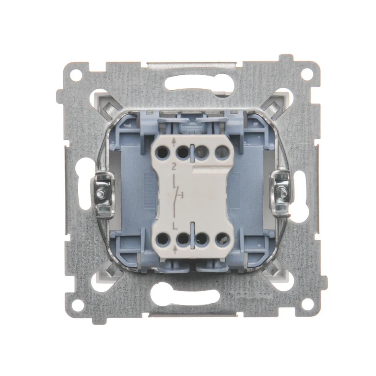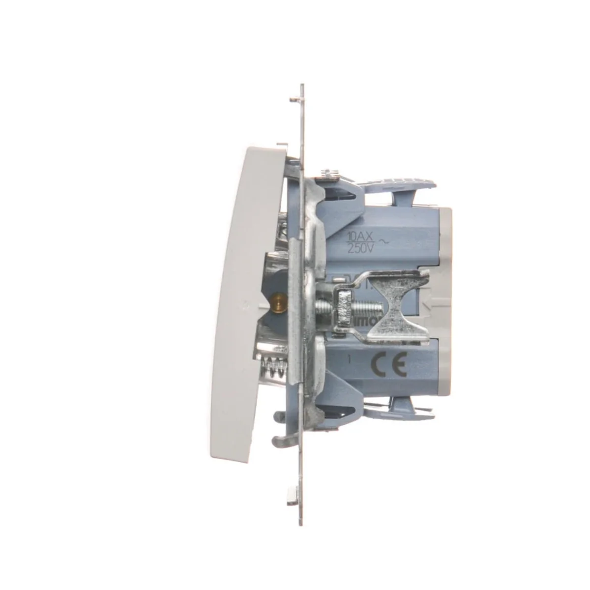 botón "luz" (módulo) 10 AX, 250 V, conectores rápidos.Para obtener la clase de protección contra salpicaduras IP44, utilice la junta de marco DU1, DU2, DU3. DU4 o DU5.