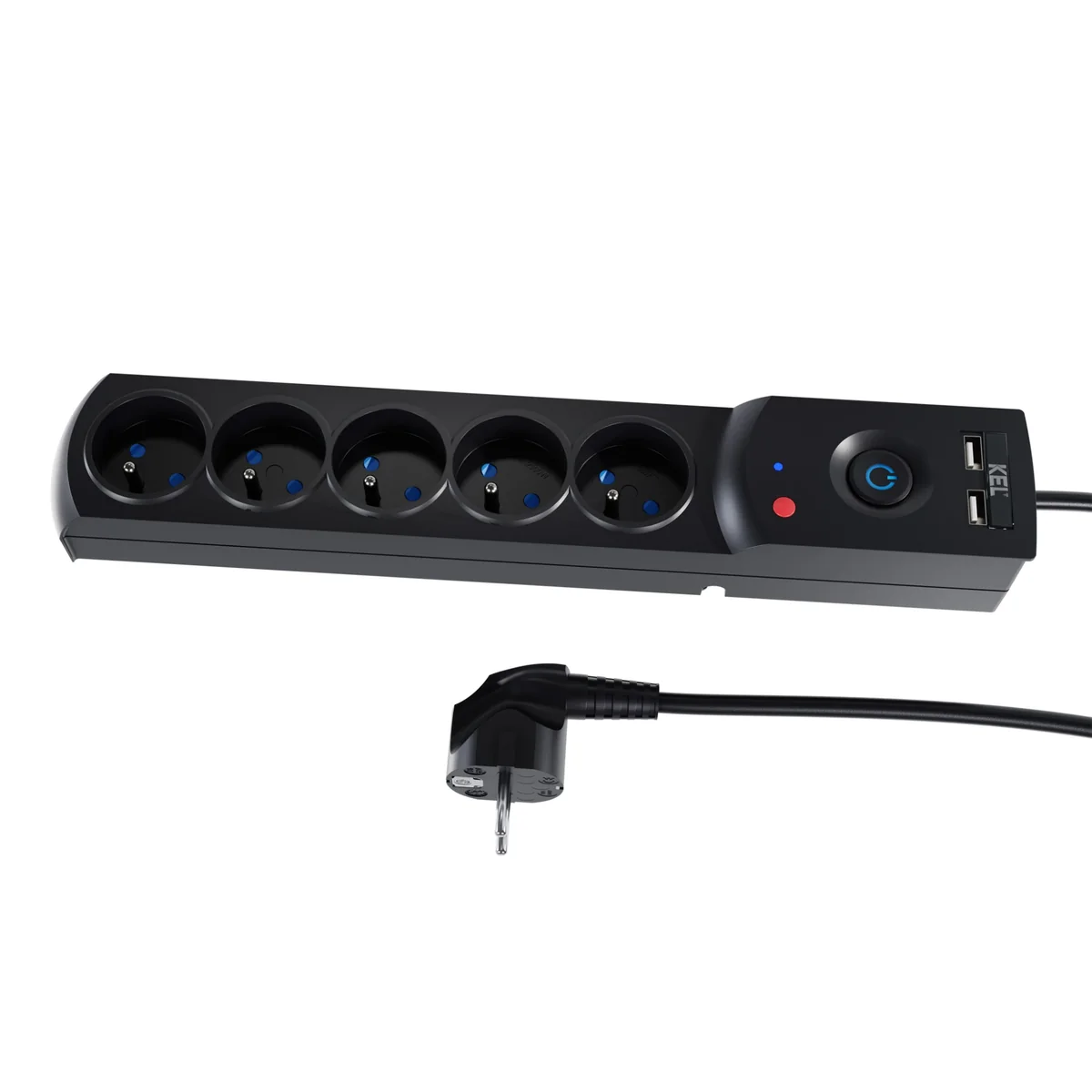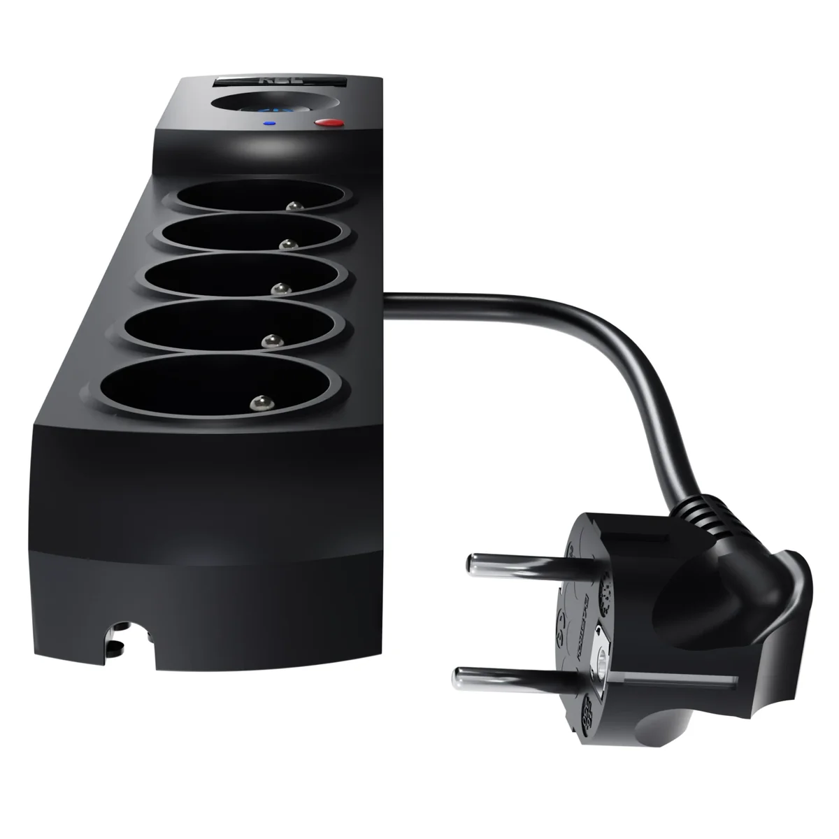 Regleta con fusible y sistema de protección contra sobretensiones profesional 5 tomas 2 puertos USB longitud 5m 10A 230V 2300W negro W-100045