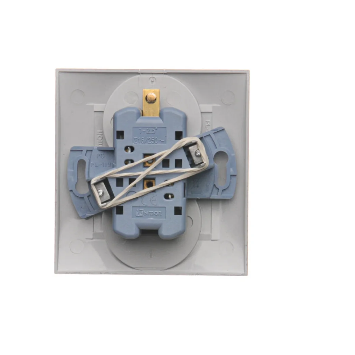 Enchufe de la serie Simon 54, del fabricante Kontakt Simon. El número de catálogo del producto es DGZ2TZ/43.
