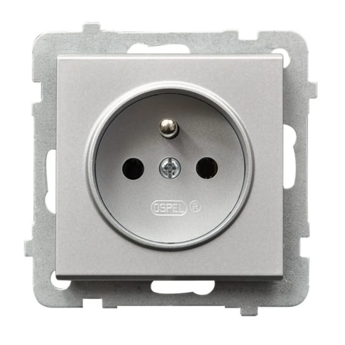 Toma de corriente de la serie Sonata, del fabricante Ospel. El número de catálogo del producto es GP-1RZ/M/38.