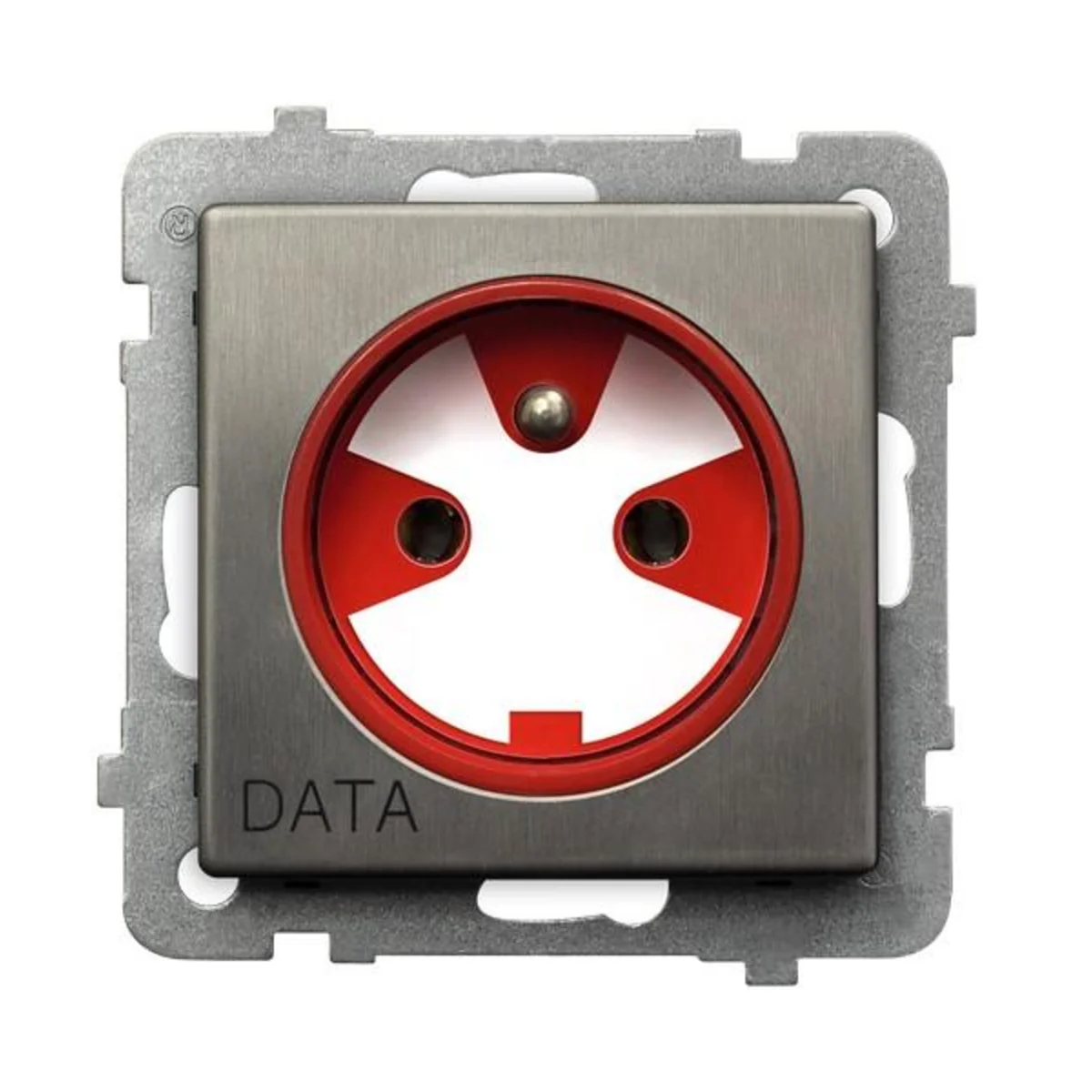 Toma de corriente de la serie Sonata Stal Inox, del fabricante Ospel. El número de catálogo del producto es GP-1RMZK/M/37.