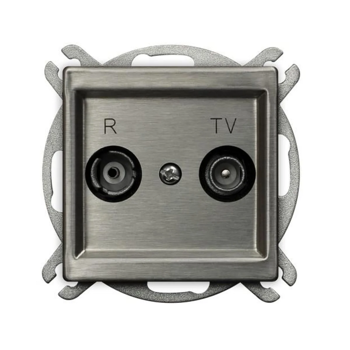 Toma de antena RTV pasante de la serie Sonata Stal Inox. Está diseñado para instalación en serie, en la que un cable pasa por diferentes receptores. Estar equipado con un marco.