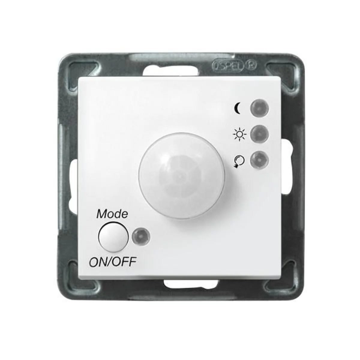 El El diseño del sensor permite su uso en instalaciones en serie compuestas por cualquier número de sensores, así como con otros interruptores estándar para uso doméstico (por ejemplo, unipolares o variables). El sensor se controla presionando el botón ubicado en la esquina inferior izquierda de la cubierta exterior marcado MODE/ON/OFF.