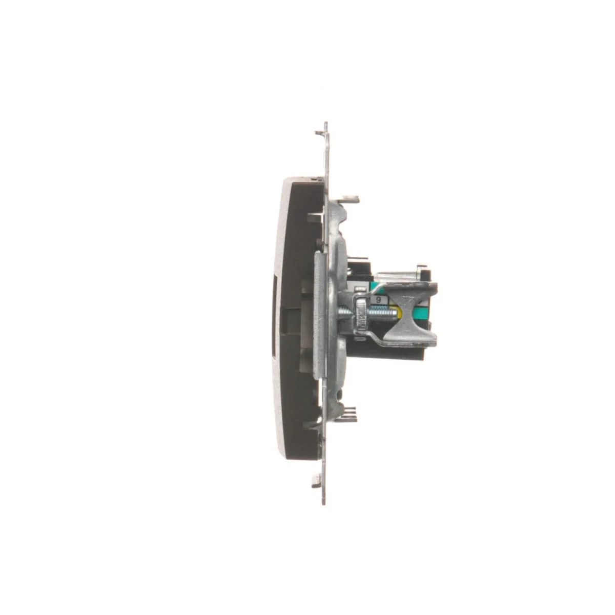Toma ordenadorRJ45 categoría 5e + teléfono RJ12, de la serie SIMON 54. Hecho de plástico. Con abrazadera que perfora el aislamiento.