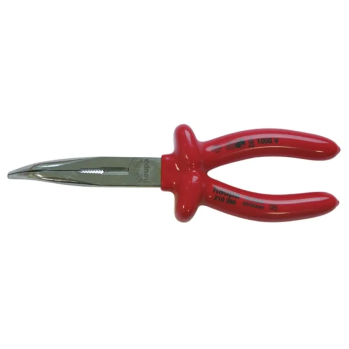 Alicates rectos con puntas semiredondas DIN 5236 A VDE de acero C 45, templados en aceite, templados adicionalmente por inducción, para trabajos duros cables 150 kp/mm2; (N 1500), cromado, aislamiento bicolor por inmersión — exterior rojo/interior amarillo.