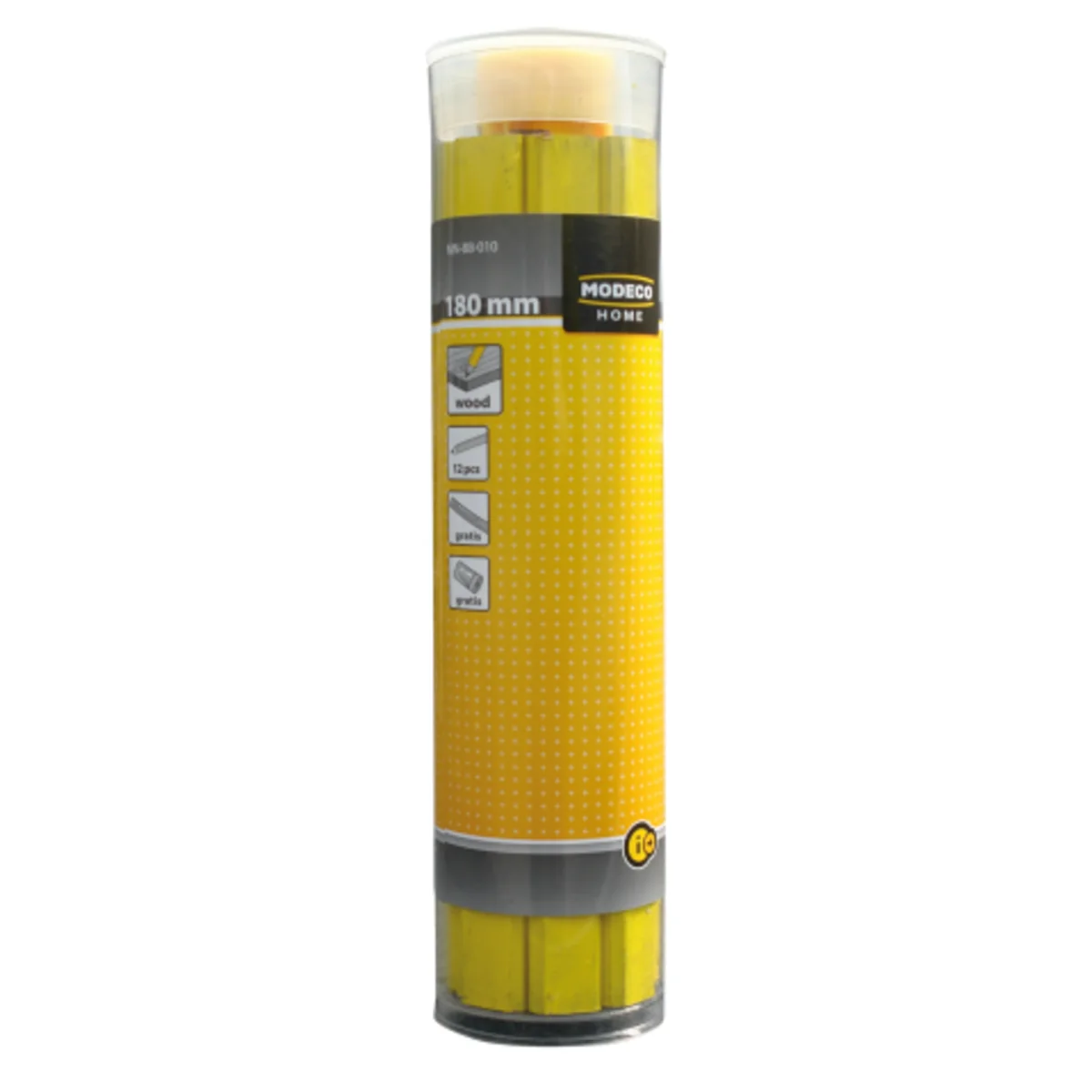 Fabricado en madera especialmente barnizada, lo que lo hace resistente a la rotura y fácil de afilar