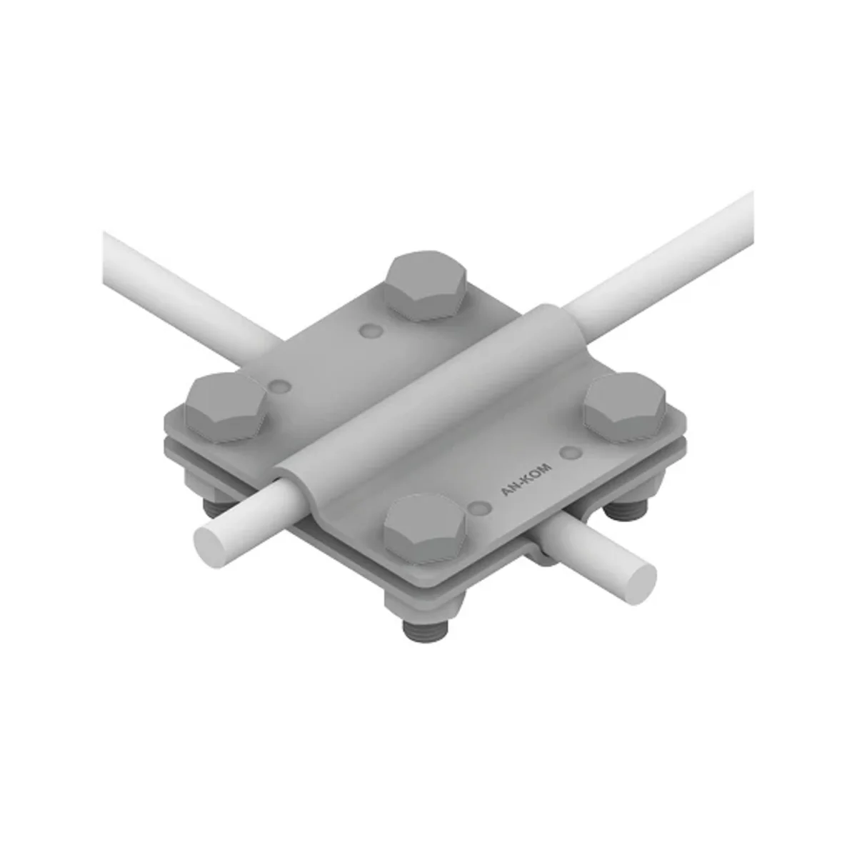 Conectores en cruz atornillados con cuatro tornillos para conectar cables redondos en forma transversal y en forma de T. Clase de resistencia de corriente H = 100 kA