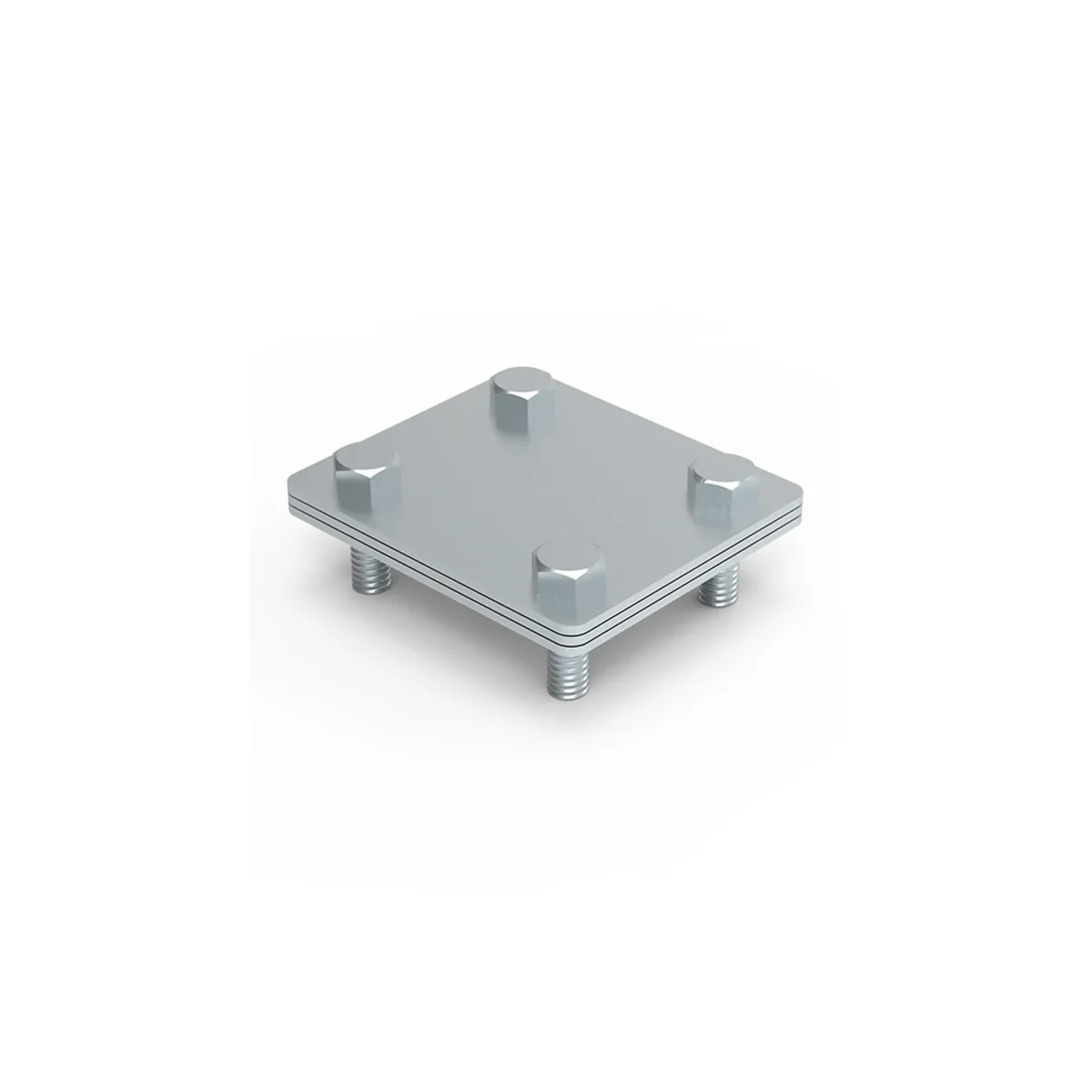 Se utiliza para conectar aros. El conector consta de 3 piezas de 2 mm de espesor, atornilladas entre sí con 4 tornillos M8.