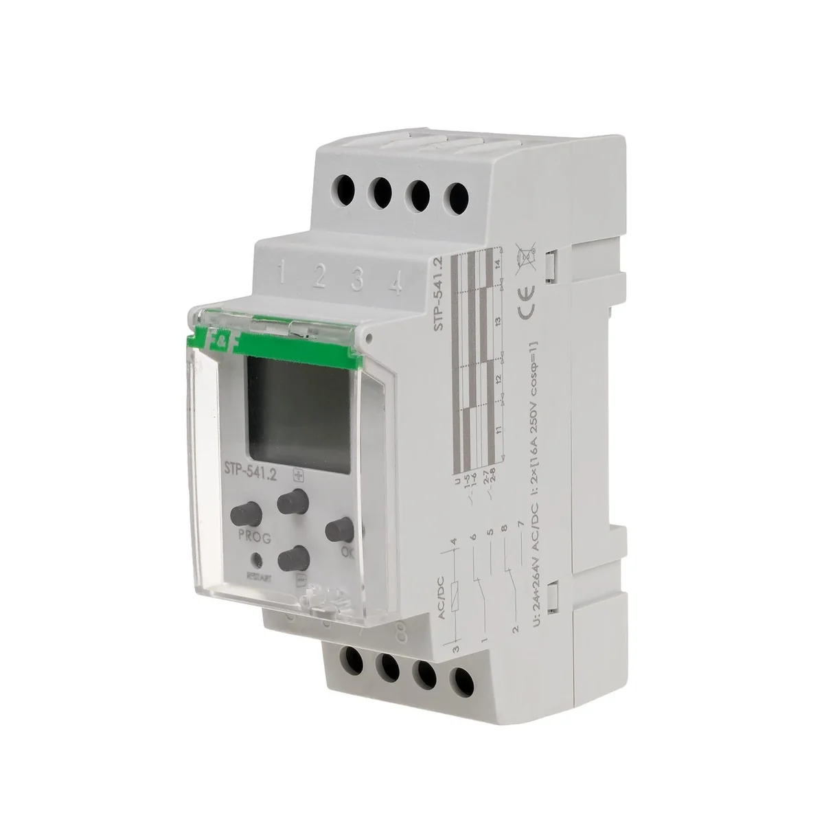 L'automate programmable est utilisé pour contrôler les processus technologiques dans les systèmes d'automatisation industrielle, où il est nécessaire d'allumer temporairement, cycliquement et alternativement des récepteurs avec des interruptions forcées et temporaires entre les connexions successives. Le contrôleur fonctionne selon le programme de quatre temps et le nombre de cycles. Un cycle est une suite d'enclenchements successifs de quatre contacts Après la mise sous tension, le contrôleur passe automatiquement à l'exécution du programme. Le contact sera commuté sur la pos. 1-5 pour le temps t1. Après le temps t1, le contact reviendra en position 1-6 pour le temps t2. Ce n'est qu'après le temps t2 que le deuxième contact sera commuté en pos. 2-7 pour le temps t3. Après l'instant t3, le contact est passé en pos. 2-8 pour le temps t4. Après l'instant t4, le contrôleur recommencera le cycle du programme depuis le début (à partir de l'instant t1). Le cycle se répétera selon le nombre de répétitions programmé ou à l'infini en cas de travail en "boucle". Une panne de courant > 1sec arrêtera la mise en œuvre du programme du contrôleur. Après la remise sous tension, le contrôleur commencera à exécuter le programme depuis le début, y compris le nombre programmé de répétitions de cycle.< td>Nombre de répétitions de cycle
