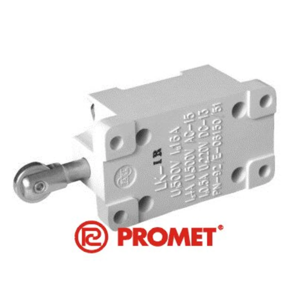 Fin de course LK-1R sans boîtier. Fin de course NF/NO avec poussoir et galet parallèle au plan de montage.