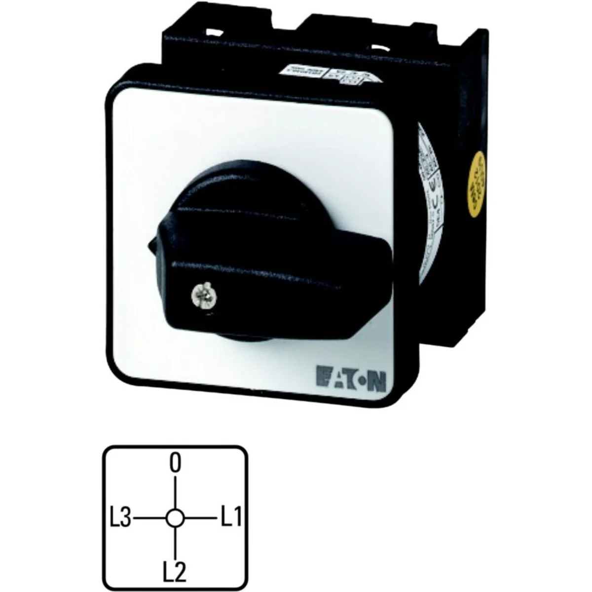Interrupteur à came In=20A P=6,5 kW. Avec bouton noir et plaque frontale. Commutable tout autour dans les deux sens. Mesure par transformateur. Avec position 0