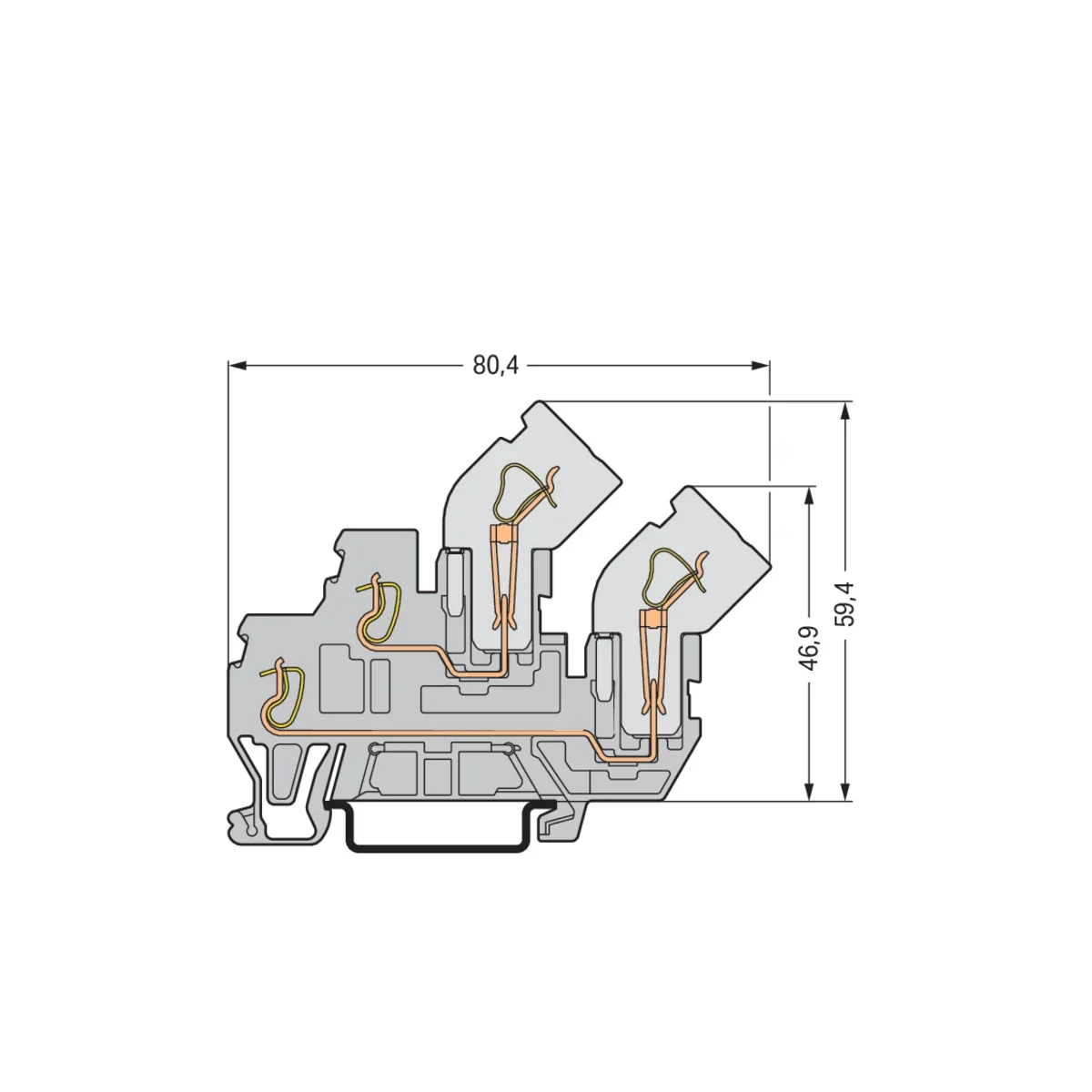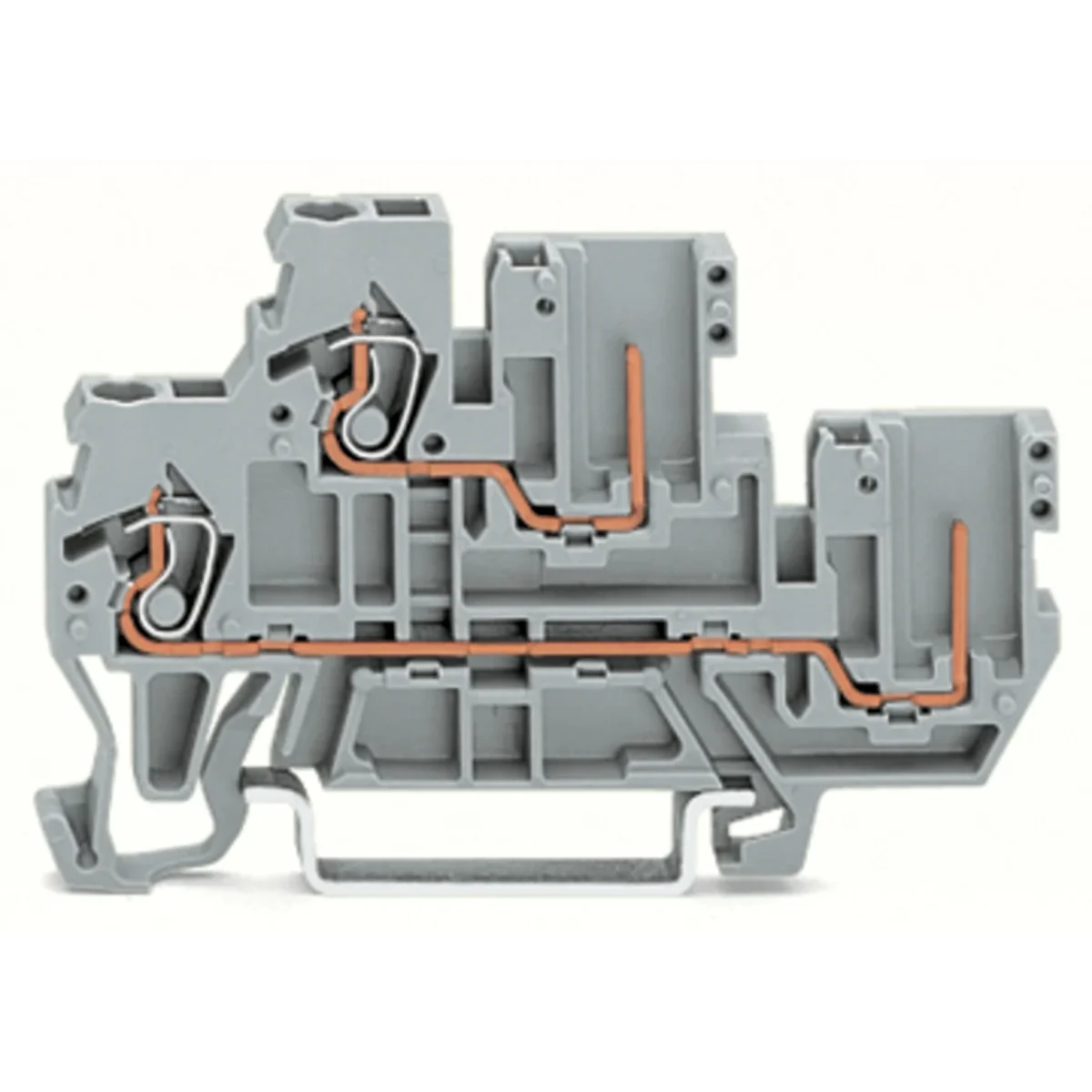 Bloc de jonction de base L/L traversant/traversant à deux étages 1 conducteur/1 broche, boîtier gris.