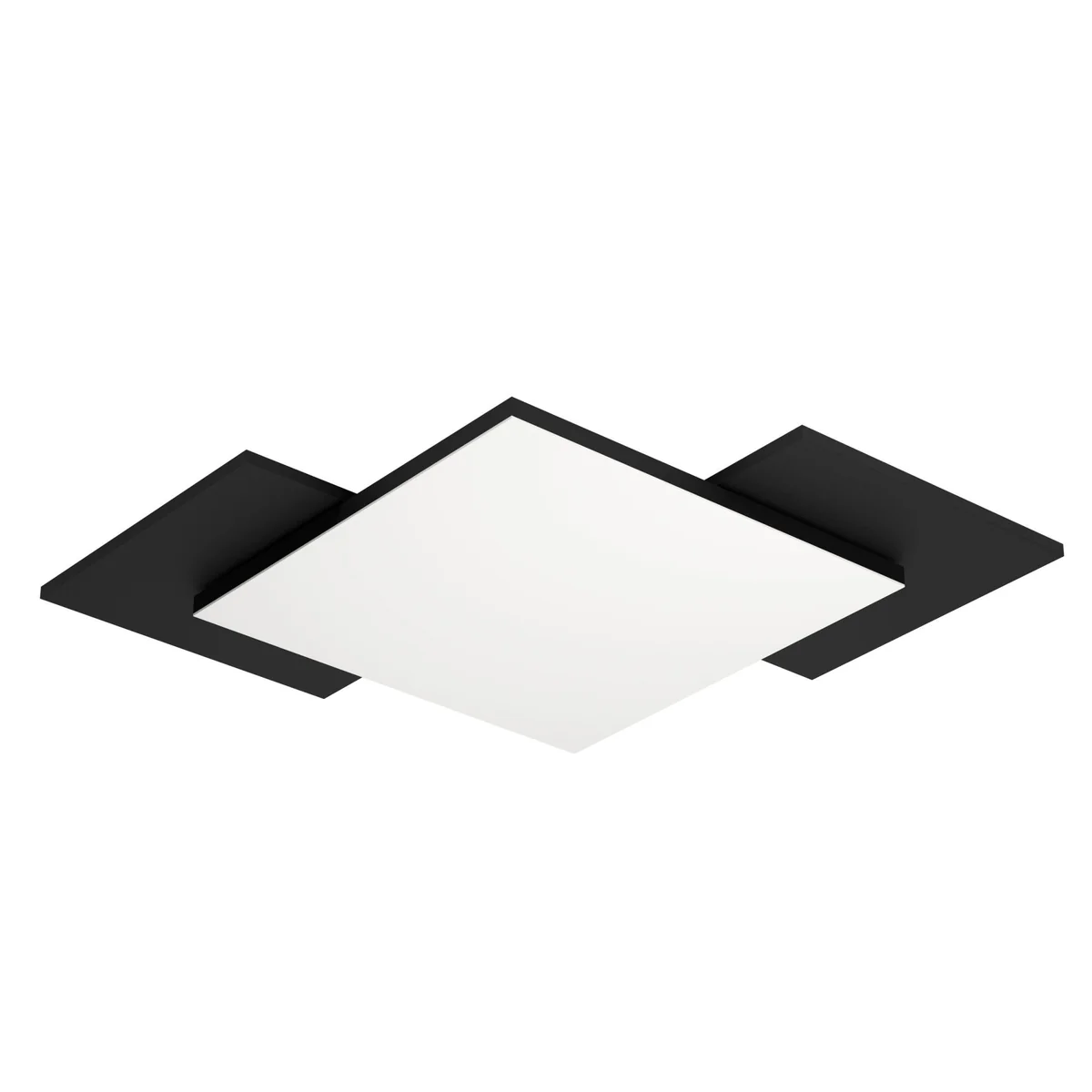 Le plafonnier LED TAMURIA est en métal avec une surface lumineuse carrée en plastique blanc.