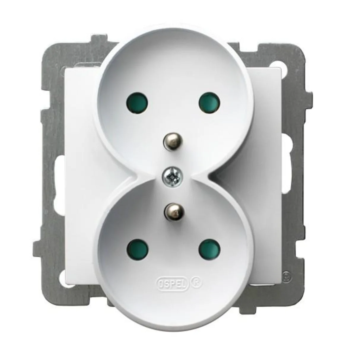 Prise électrique double, mise à la terre, avec obturateurs pour les chemins de courant.