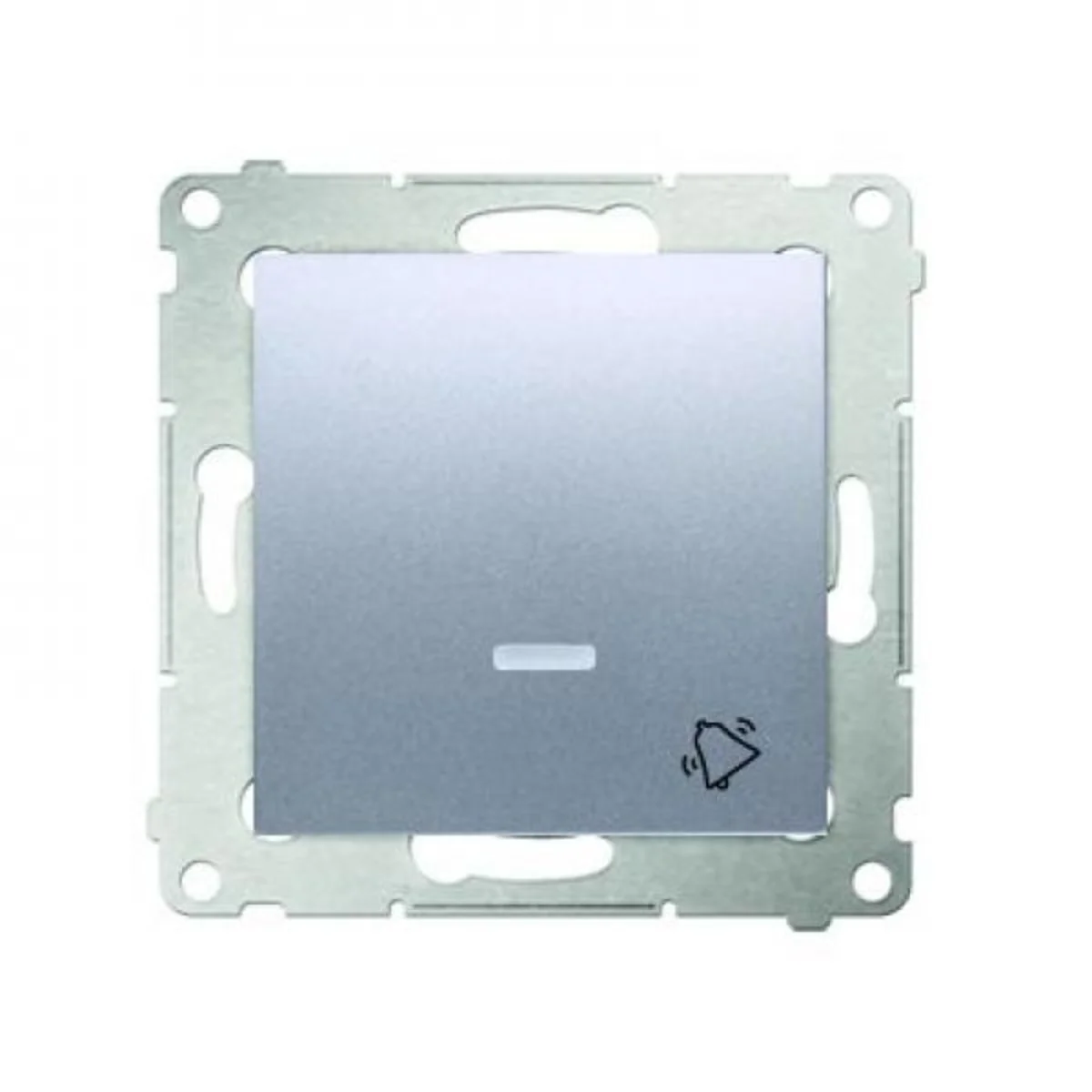 "bouton cloche" avec rétroéclairage, série Simon 54, du fabricant Contacter Simon. Le numéro de catalogue du produit est DD1L.01/43 fort >. Argent mat, couleur métallique.