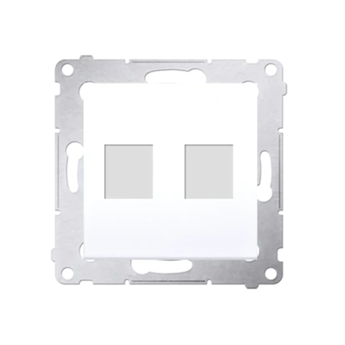 Cache pour prises de communication de données sur Keystone flat double, série Simon 54, du fabricant Contacter Simon . Le numéro de catalogue du produit est DKP2.01/11.