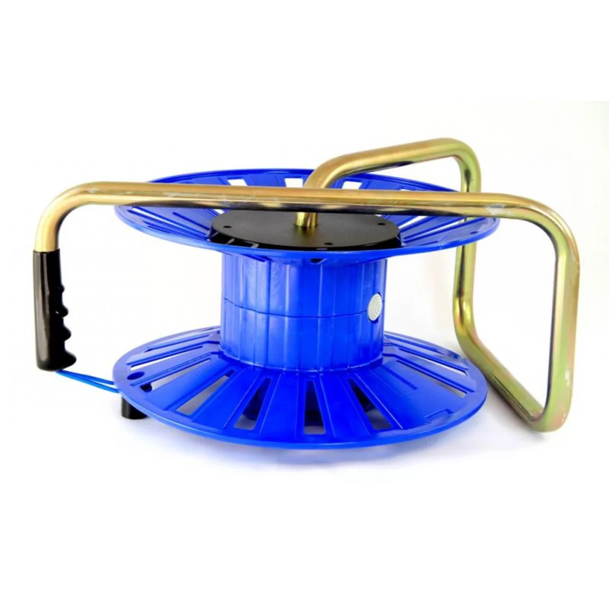 L'enrouleur à tambour est adapté pour enrouler des fils électriques, des tuyaux d'arrosage, des cordes, etc... Il est disponible en six versions. La construction de la bobine se caractérise par un support métallique solide composé d'un tube galvanisé avec une poignée profilée et un tambour en plastique de haute qualité. Dans le corps du tambour, il y a des chambres qui permettent l'installation de prises électriques de panneau, monophasées et triphasées, dans n'importe quelle configuration en fonction des besoins individuels de l'utilisateur. Le tambour comporte un presse-étoupe approprié terminé par un presse-étoupe flexible pour l'insertion d'un câble électrique. De plus, la chambre est équipée de pinces qui empêchent le câble d'être tiré, ainsi que de nervures appropriées pour une fixation facile de n'importe quel bornier.