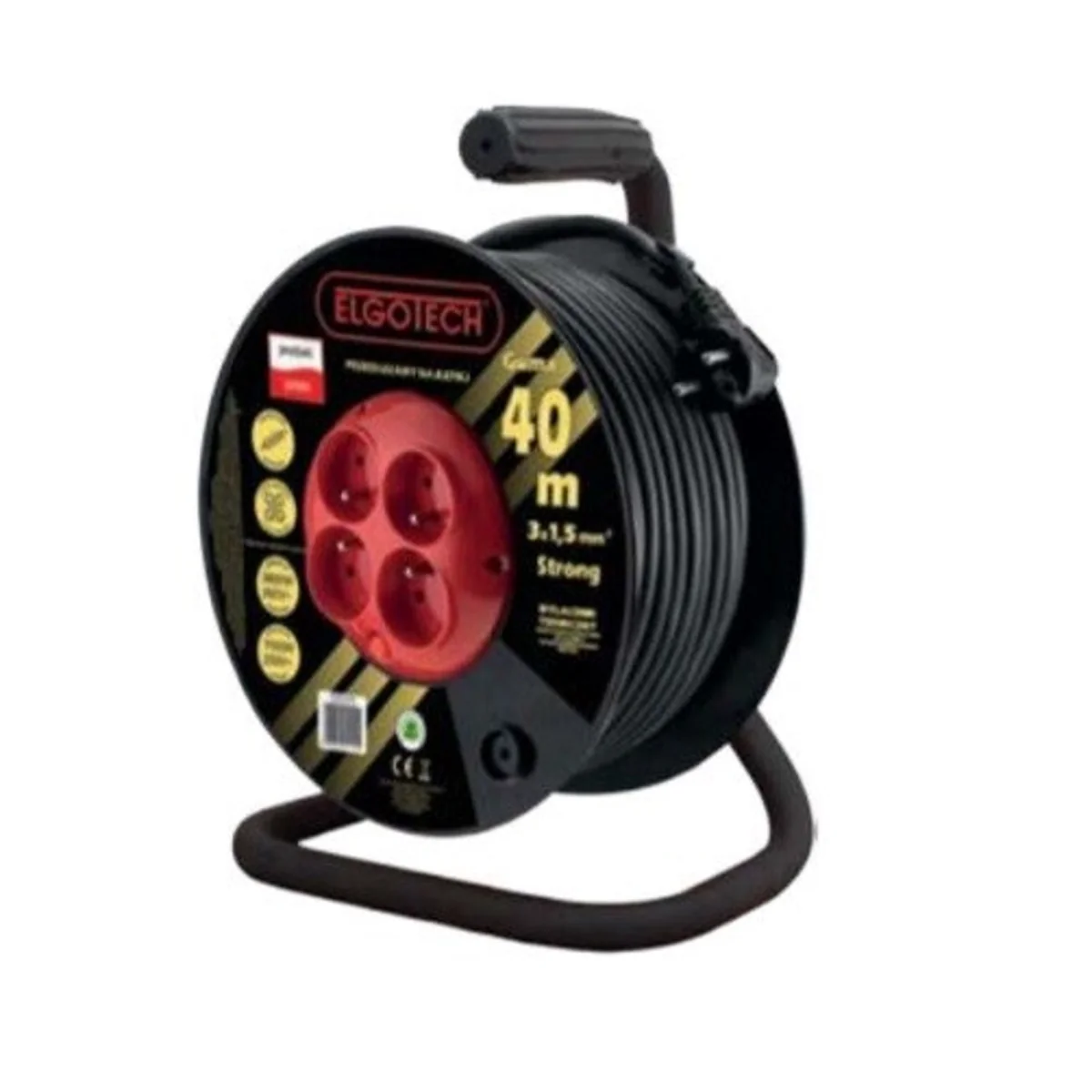 Enrouleur de câble rallonge STRONG 4 prises z/u 25mm H05RR-F 3x1.5 noir PZB-40-25G
