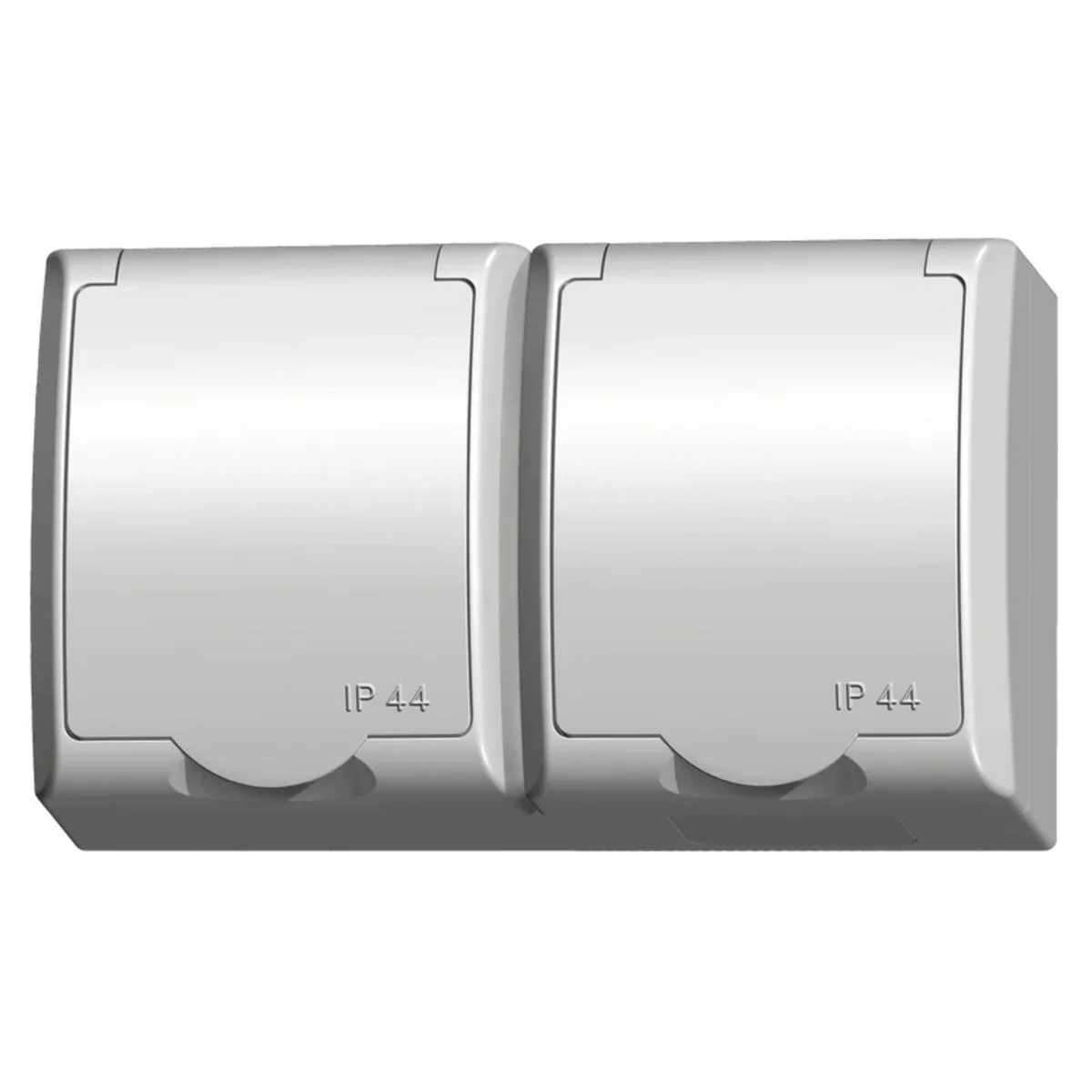 Prise électrique murale hermétique de la série Wave, de Ospel. Le numéro de catalogue du produit est GNH-2HSP/00/W.