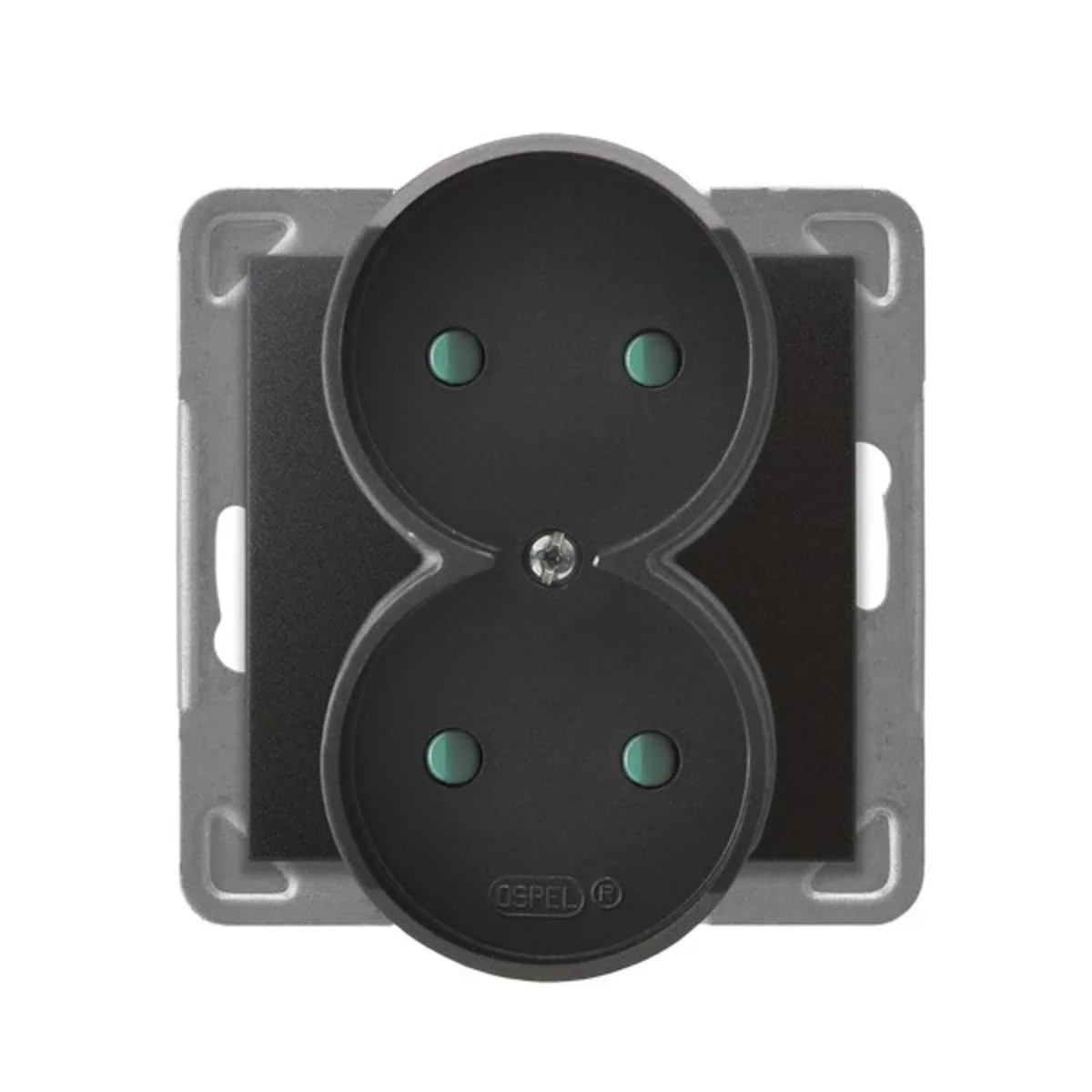 Prise électrique double, avec volets pour les chemins de courant, à équiper d'un cadre.