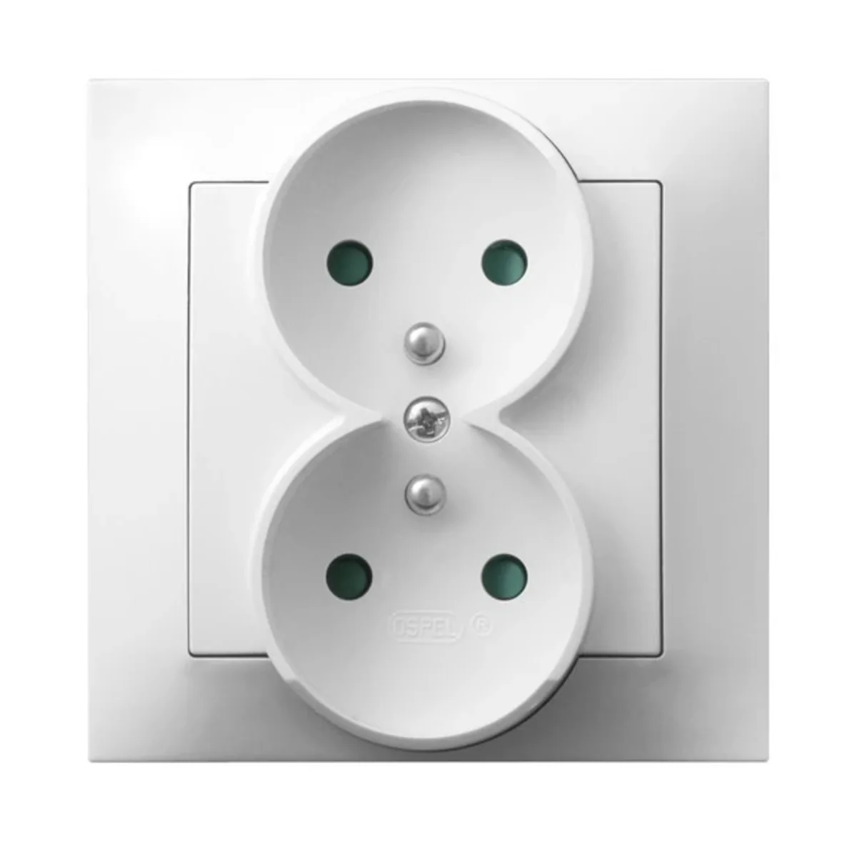Prise électrique double, mise à la terre, avec obturateurs pour les chemins de courant.