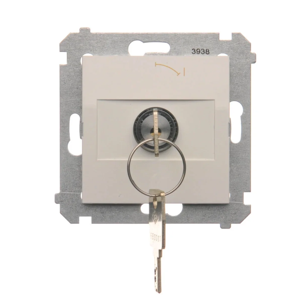 Interrupteur à clé momentané (bouton poussoir) Série Simon 54, du fabricant Contactez Simon. Le numéro de catalogue du produit est DP1K .01/11. En blanc.