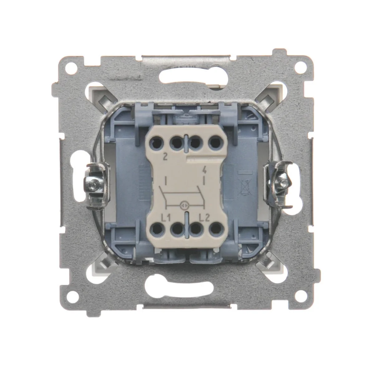 Interrupteur bipolaire avec éclairage de la série Simon 54, du fabricant Contacter Simon. Le numéro de catalogue du produit est DW2L.01/44.