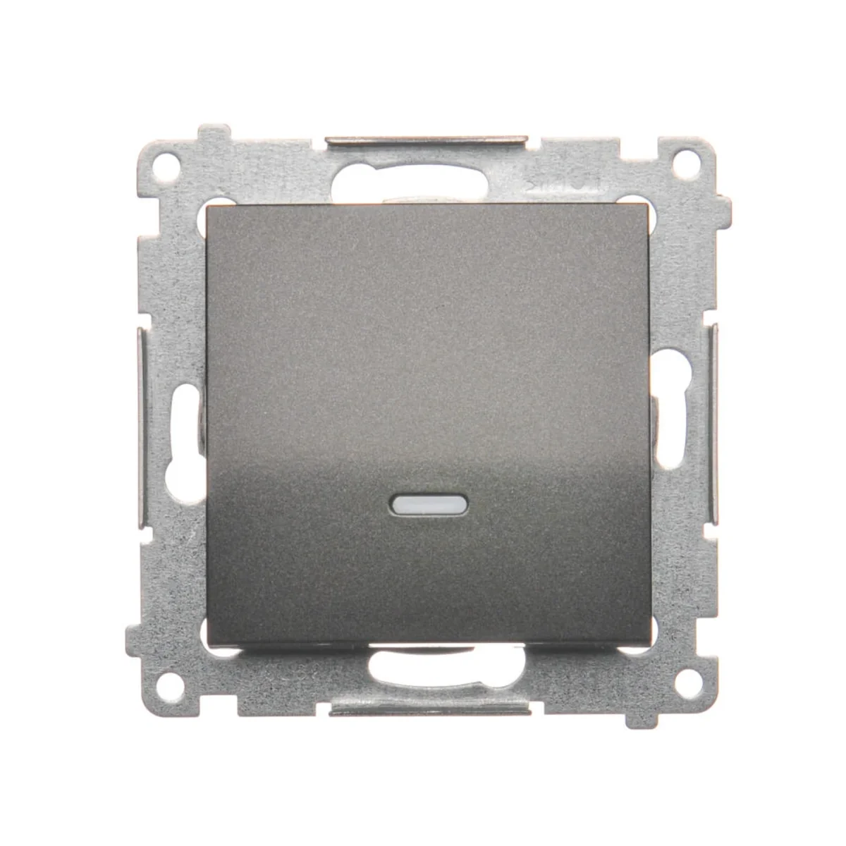 Interrupteur unipolaire (bistable) de la série Simon 54. Avec éclairage LED bleu remplaçable pour l'orientation. Pour obtenir la classe d'étanchéité IP44, utilisez un joint de cadre.