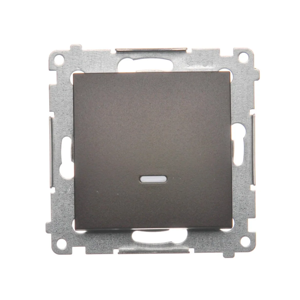 Interrupteur unipolaire (bistable) de la série Simon 54. Avec éclairage LED bleu remplaçable pour l'orientation. Pour obtenir la classe d'étanchéité IP44, utilisez un joint de cadre.