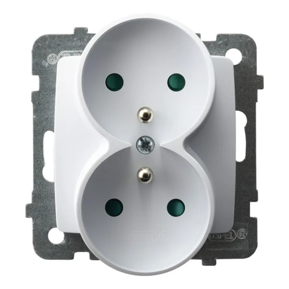 Prise électriquedouble, avec mise à la terre, avec volets de chemin de courant.