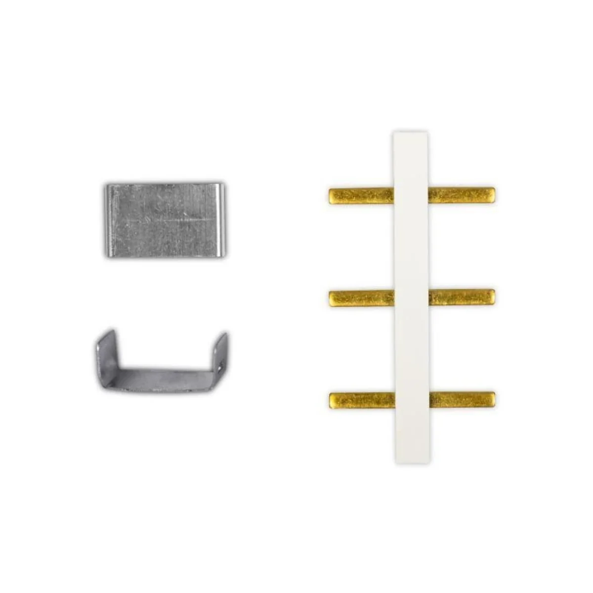 Kit de montage pour prises de courant modulairespermet de connecter des prises pour obtenir plusieurs prises (2 prises, 3 prises, 4 prises, etc.). Un ensemble unique se compose d'un rail (connecteur - pont) pour connecter les bornes L / N / PE d'une prise avec les bornes de l'autre prise et de deux plaques pour connecter (court-circuiter) les prises en un seul bloc. Grâce à cela, vous pouvez obtenir rapidement plusieurs sockets sans “pontage” prises avec des fils ordinaires.